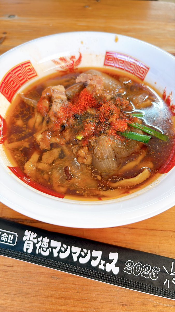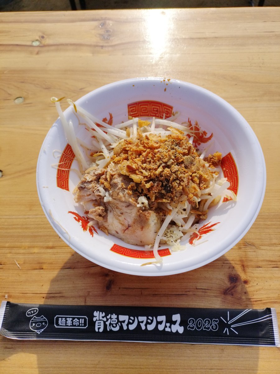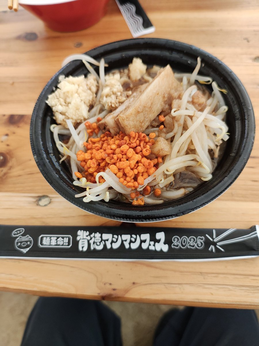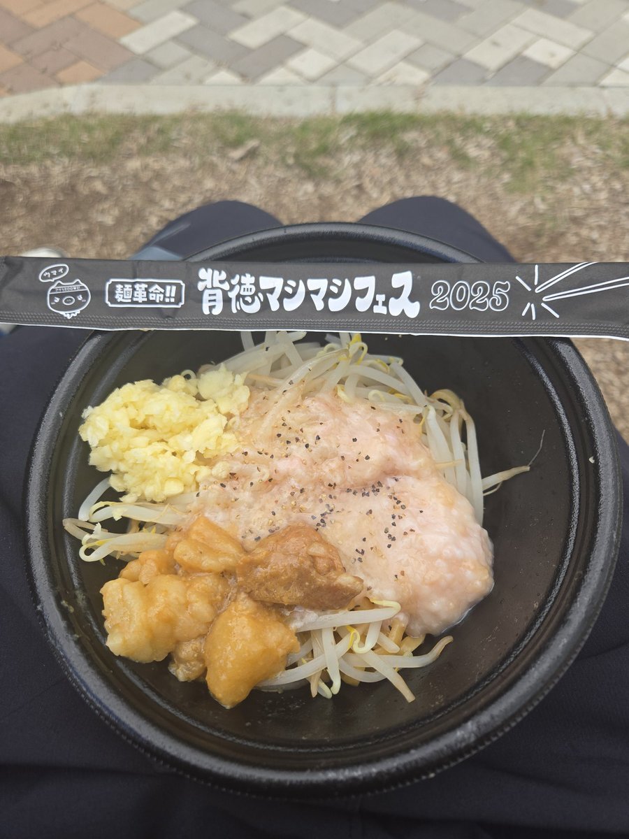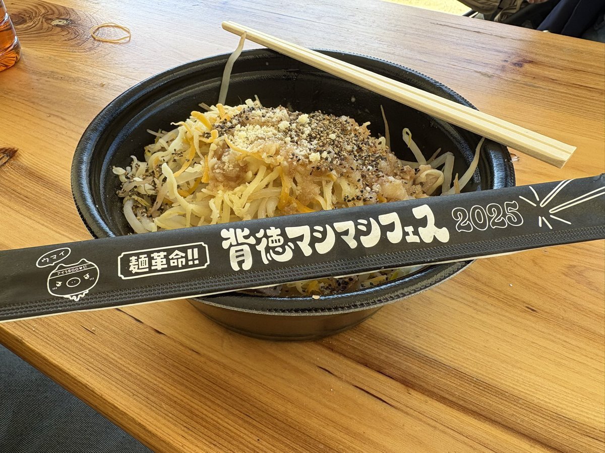 背徳マシマシフェス、参加してきました。 1,限界を超えろ 2,麺に始まり麺に終わる 3,愛を込めて 夢を語れ系列のゴワワシ麺で台湾まぜそばが食べられるのはフェスならでは。麺始も愛も、屋外でゆっくり食べ比べ。なかなか無い機会🍜 ごちそうさまでした🙏 #背徳マシマシフェス pic.x.com/87i4E6NKOF
