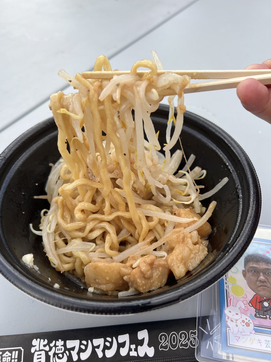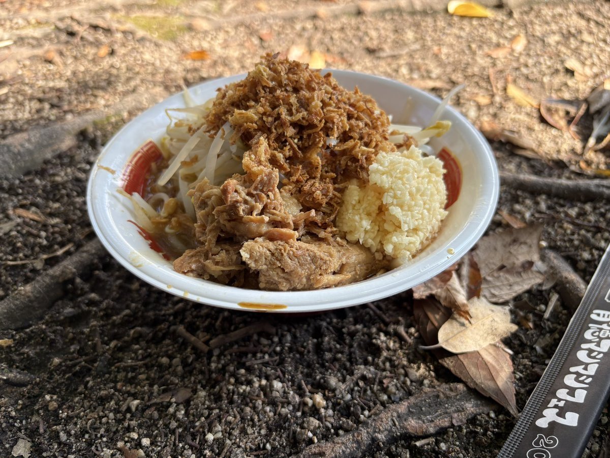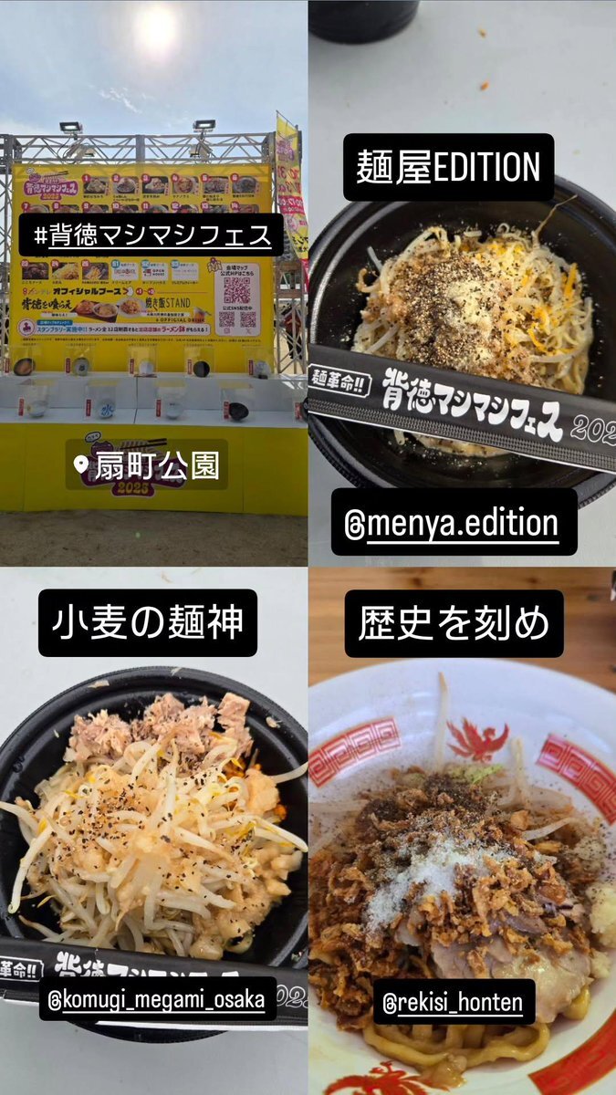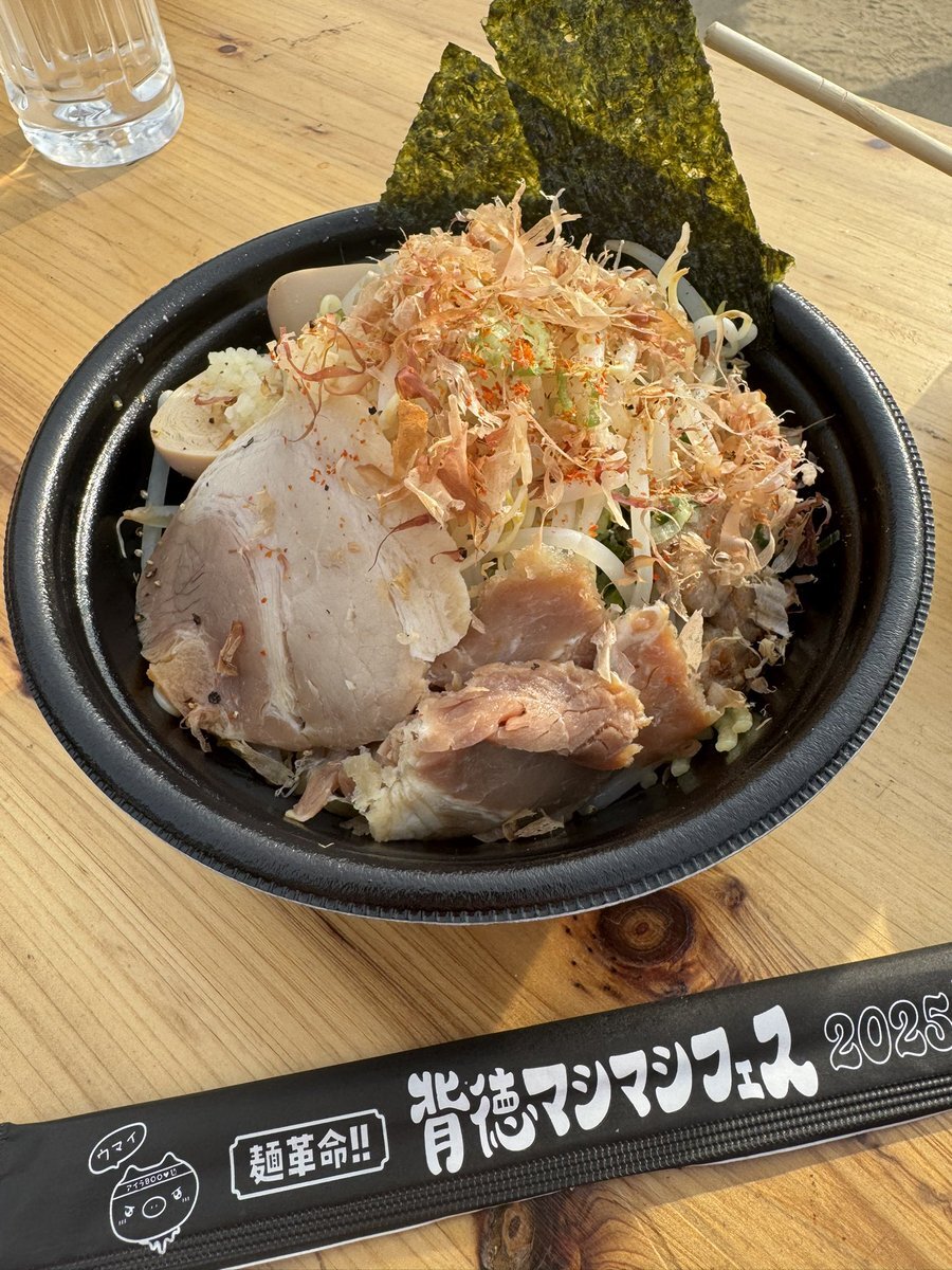 久しぶりのノンビリした休日、扇町公園でやってる背徳マシマシフェスに来ました🍜どの店もすごい行列、その中でも歴史を刻めは大人気😆なかもず店からはナカジさんがスタッフとして来てたけど、声出しすぎてガラガラなってた。汁なし金シャツ全マシマシ、最高でした🙏 #歴史を刻め #背徳マシマシフェス pic.x.com/iBHRIKzQqZ