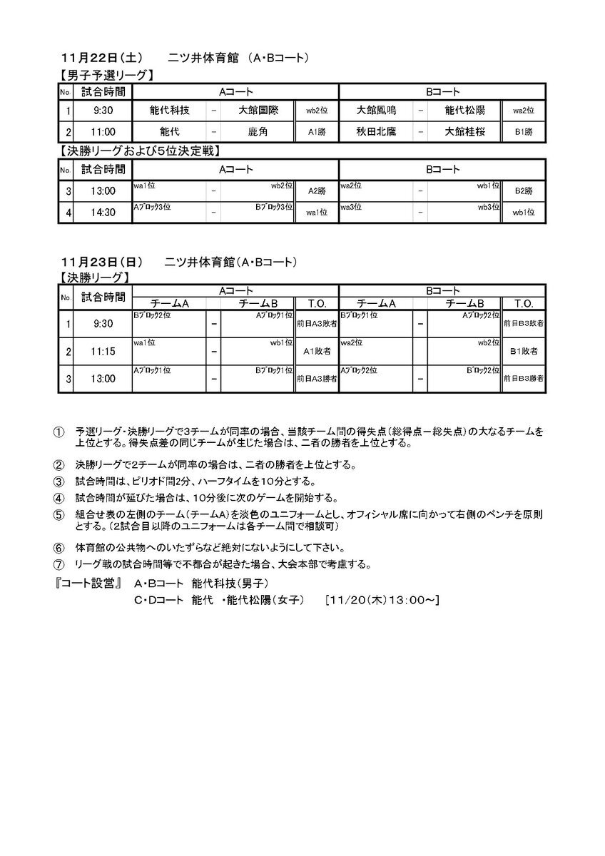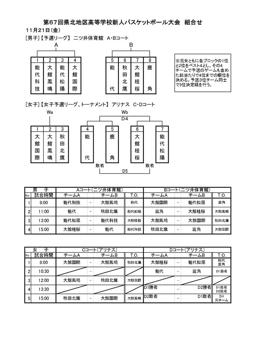 県北地区高校新人総体(11/21〜23日、能代市二ツ井町総合体育館など)の組み合わせです⛹️‍♂️⛹️‍♀️ 能代市からは以下のチームが出場します。 【男子】能代科技、能代、能代松陽 【女子】能代、能代松陽 各チームの皆さん、頑張ってください📣✨ #能代科技 #高校バスケ pic.x.com/aamwnPAz3U