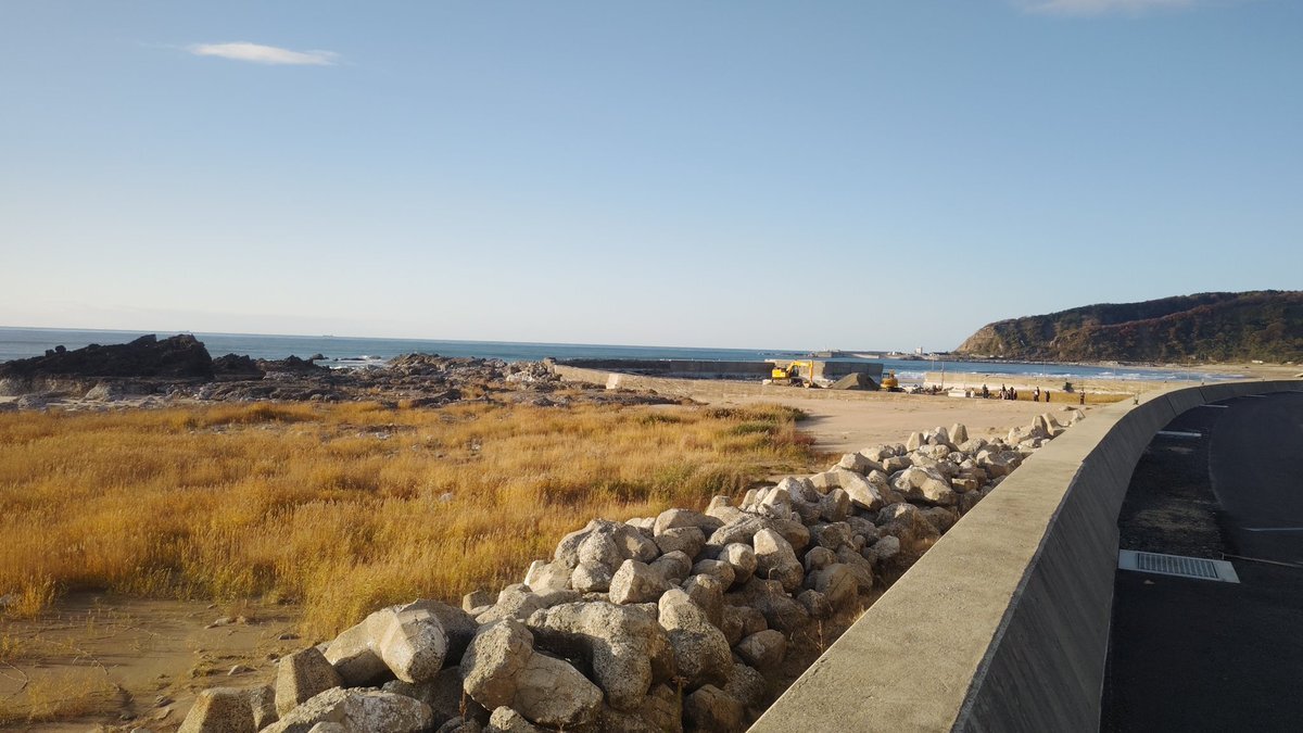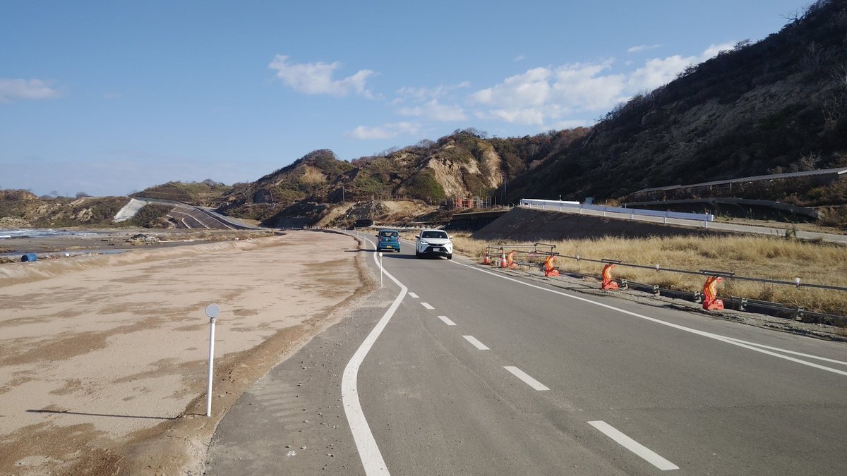 外浦をドライブ。山崩れで不通になった旧道に替わり、隆起した海岸に仮設で通した道路が圧巻です。大自然の脅威の凄まじさと、それに抗うヒトの知と技を体感できる場所になっていますね。 #能登イコウヨ pic.x.com/P9ELtjavSW
