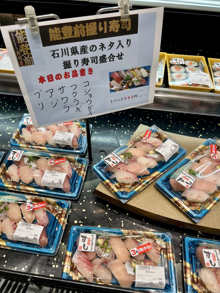 宿泊先1階の居酒屋で楽しんだけども。 本日のお夜食。どんたくで「石川県産のネタ入り、握り寿司盛り合わせ」。本日のネタは、ブリ、アジ、サワラ、フクラギ、コショウダイ。 サイコーか。 #能登イコウヨ #能登ウマイヨ pic.x.com/D4vXXdH24X x.com/kudzilla/statu…