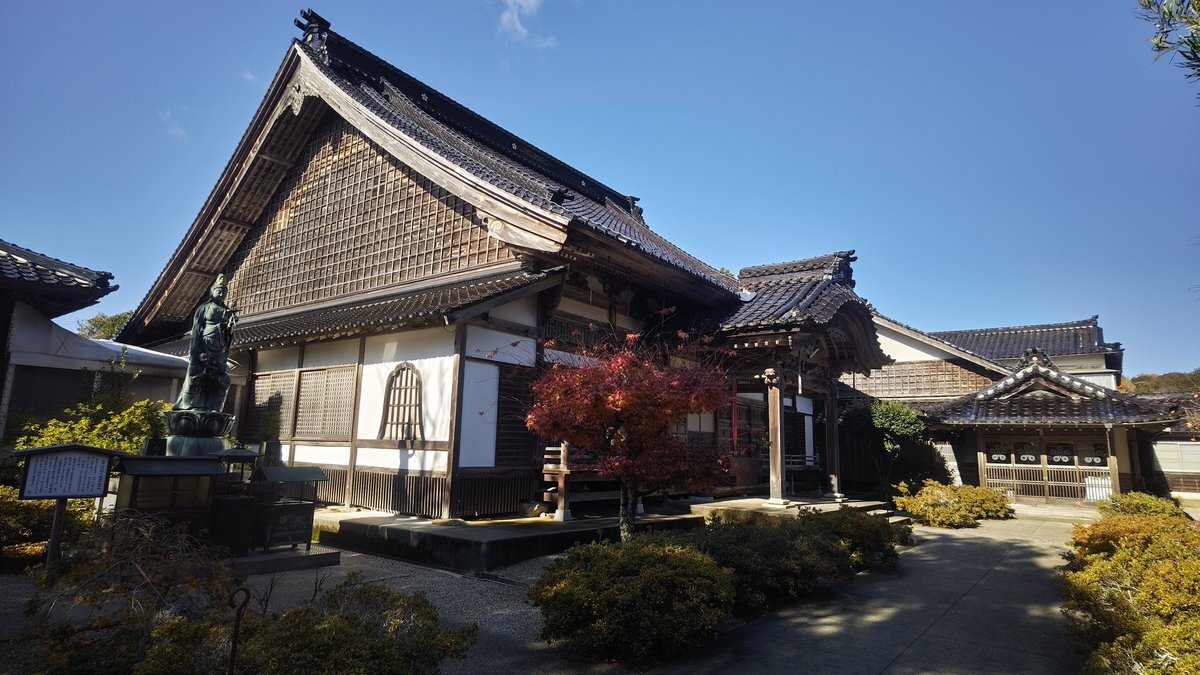 晩秋の妙成寺。青空に檜皮葺・杮葺きの伽藍がよく映えます。 #能登イコウヨ pic.x.com/CGYt8lQLnR
