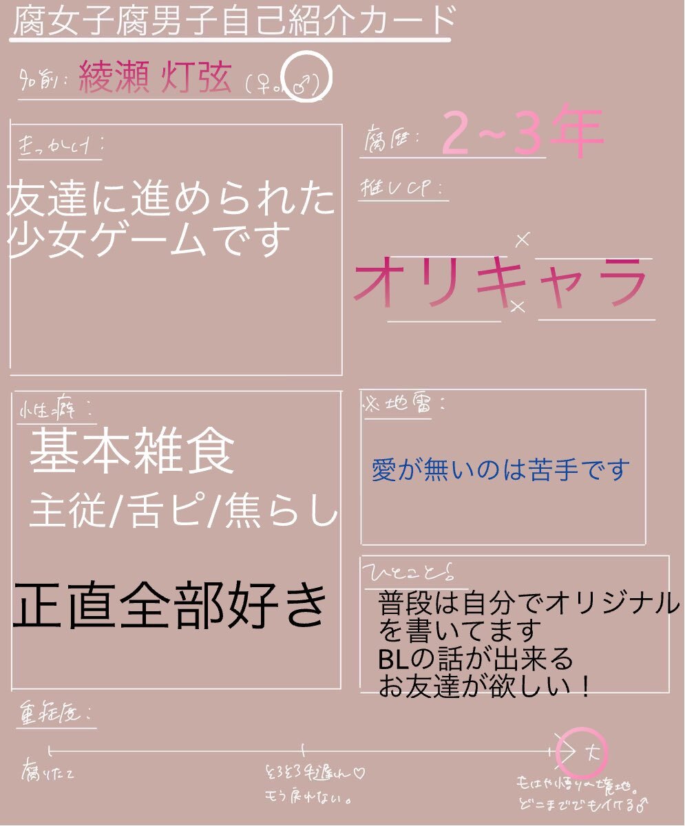 #腐女子腐男子自己紹介カード お借りさせていただきました 普段は自分の好きな設定で創作してます #腐女子さん腐男子さんと繋がりたい #BL好きと繋がりたい #腐女子腐男子と繋がりたい 色んな方とお話出来たら嬉しいです! pic.x.com/F1DOKGQWdt