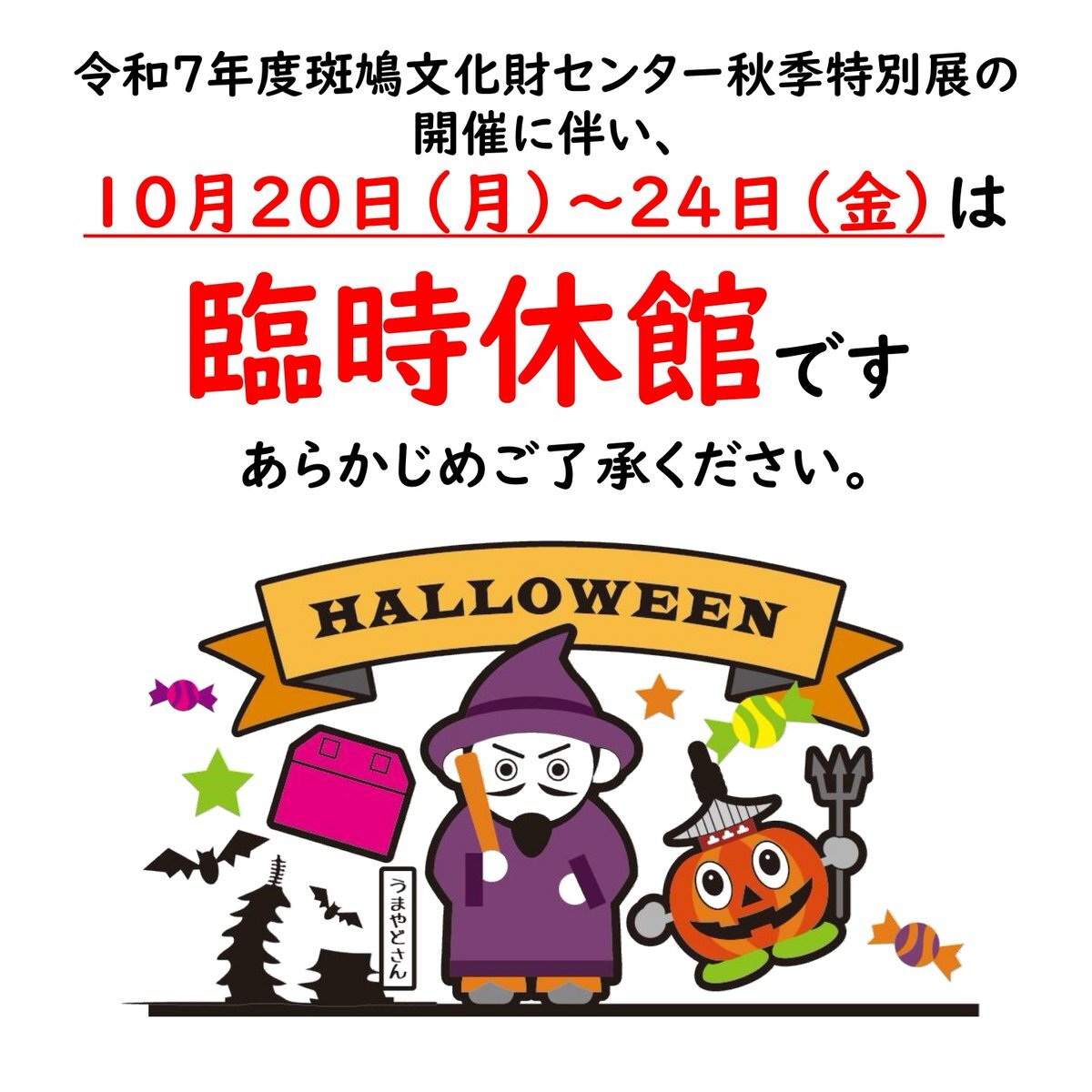 令和7年度斑鳩文化財センター秋季特別展「龍田城-片桐且元が築いた城-」開催に伴い、10月20日(月)~24日(金)まで展示替えに伴う臨時休館となります。予めご了承いただきますようお願いいたします。 #斑鳩町 #斑鳩文化財センター #臨時休館 pic.x.com/RdOGQrACcD
