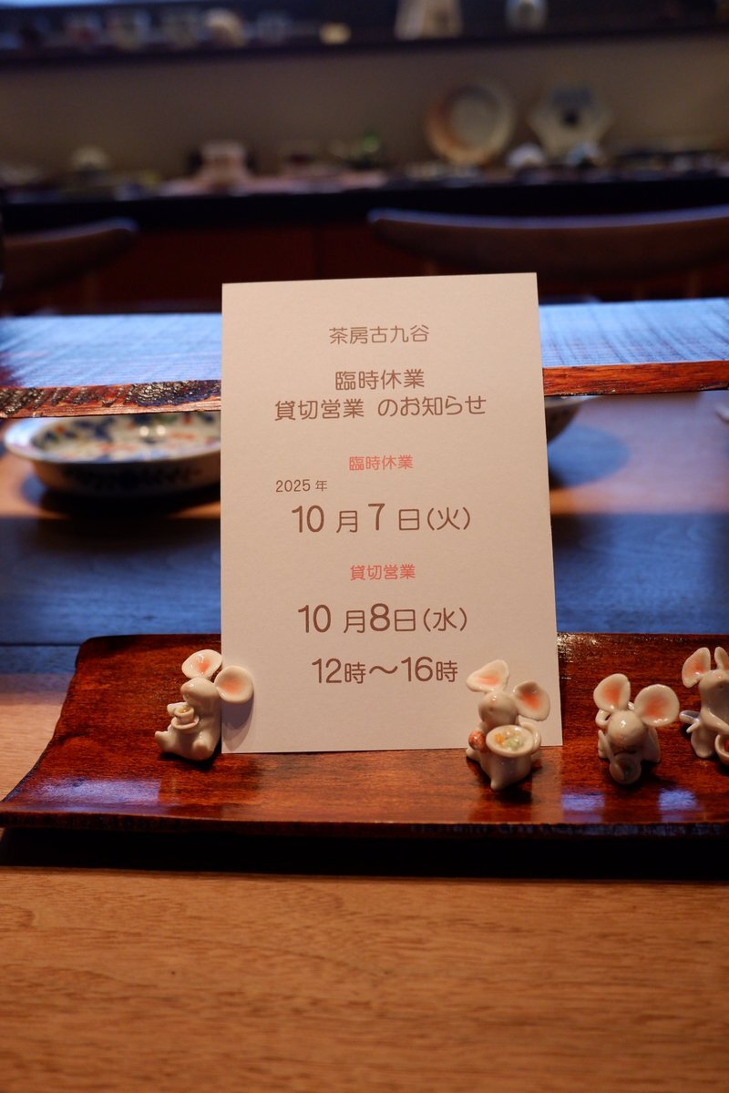 ≪臨時休業、貸切営業のご案内≫ 10/7㈫~10㈮ ■#石川県九谷焼美術館 展示入替のため #臨時休館 • ────── ✾ ────── • 美術館臨時休館中 #茶房古九谷 の営業について ▣7日㈫ #休業 ▣8日㈬ 12時~16時 #貸切営業 ▣9日㈭・10日㈮ #通常どおり営業 x.com/KUTANIYAKI_M/s…
