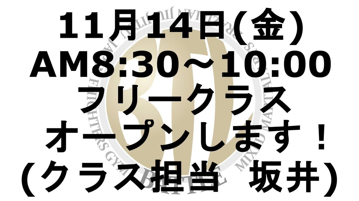 【お知らせ】 11月14日(金) AM8:30~10:00 自主練フリークラスオープンします! クラス担当は坂井ハヤトになります 沢山のご参加お待ちしております!(^^)! ※夜は通常営業となります。 #無料体験受付中 #初心者大歓迎 #ダイエット #健康 #運動不足解消 #ストレス発散 #自信を付ける pic.x.com/aiT5lEDaFG