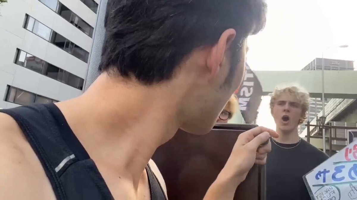 A White guy spotted among Japanese ANTIFA crowd He tells a Japanese YouTuber "Racist, go home!"
