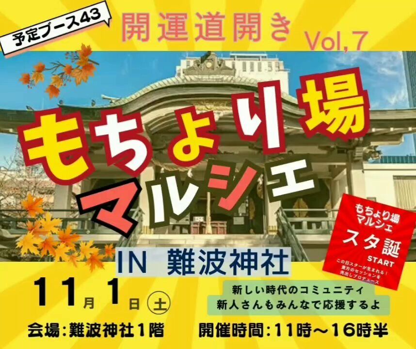 11月1日(土) 11時~16時半 大阪 難波神社にて開催されます。 もちょり場マルシェ 鑑定士AN.は出店します。 世界で唯一無二の「人形鑑定」であなたの心身を共に満たされた状態を創る為の「道」を照らし示します。 #もちょり場マルシェ #占い #恋愛占い #人形鑑定 #鑑定士AN #開運 #占い好き