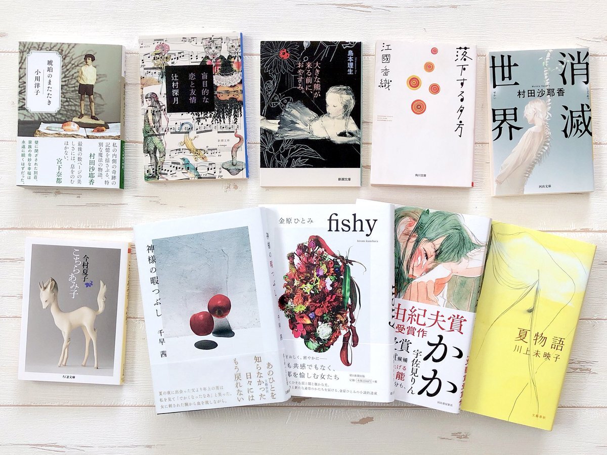 #自分の趣味全開で絶対読んだほうがいいと思う小説10選 宇佐見りん:かか 金原ひとみ:fishy 川上未映子:夏物語 村田沙耶香:消滅世界 千早茜:神様の暇つぶし 江國香織:落下する夕方 今村夏子:こちらあみ子 小川洋子:琥珀のまたたき 辻村深月:盲目的な恋と友情 島本理生:クロコダイルの午睡 pic.x.com/1xaM9jojNR