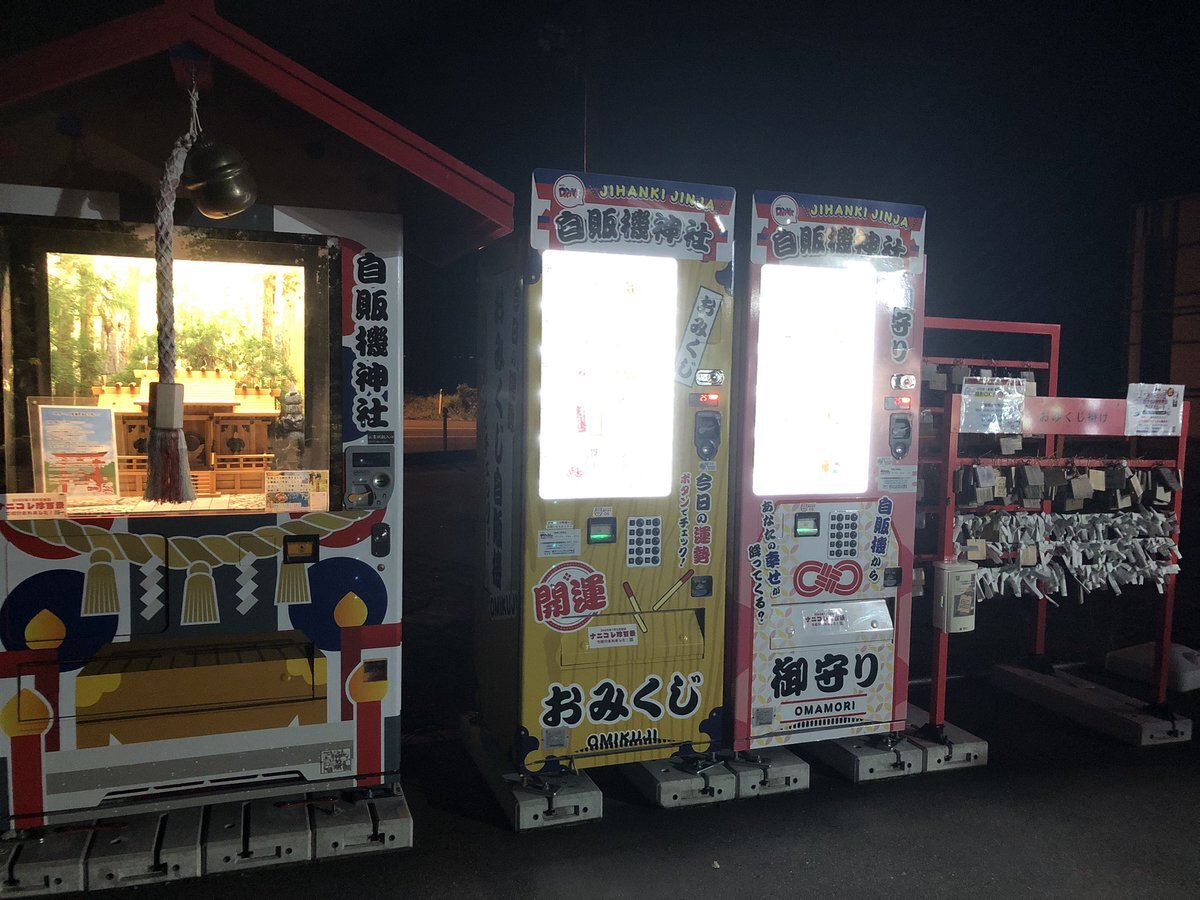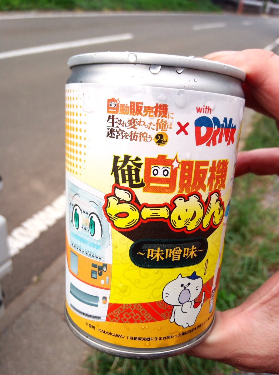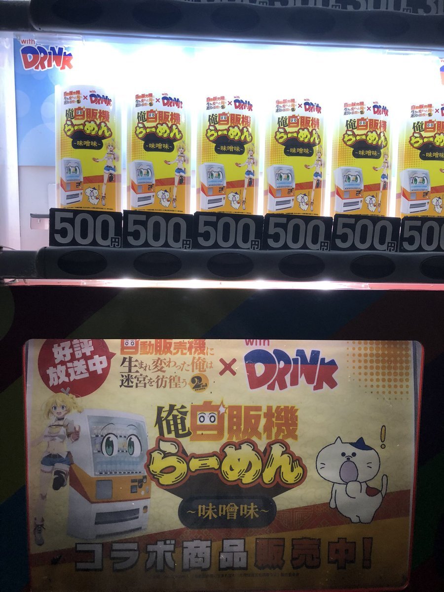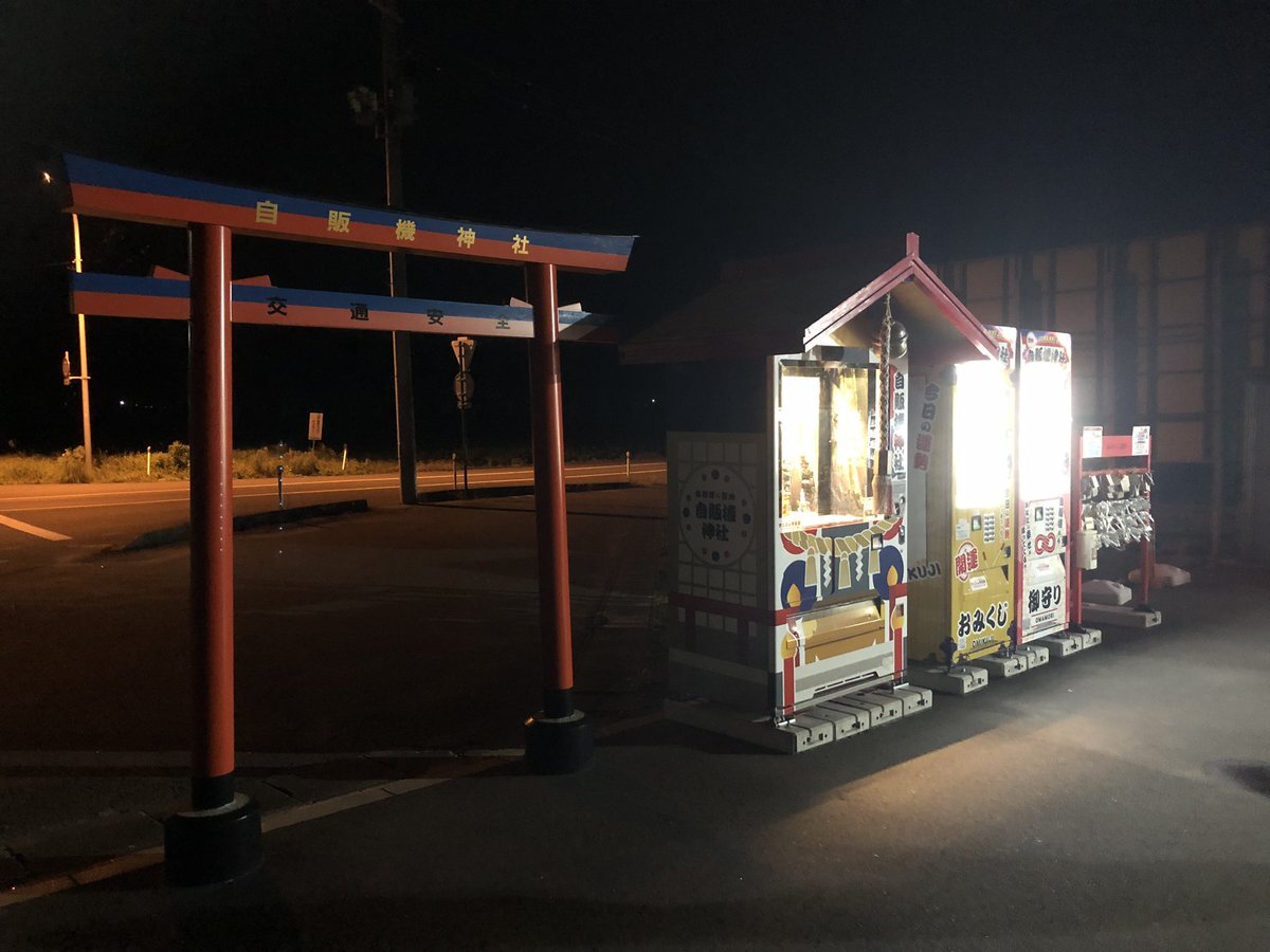 #自販機神社 行って来ました〜 夜で暗のはご容赦を…(´・д・`;) こっちはハッコンいないの残念だけど コラボラーメンは置いてありました! #自動販売機に生まれ変わった俺は迷宮を彷徨う pic.x.com/8hL3LoUVf6