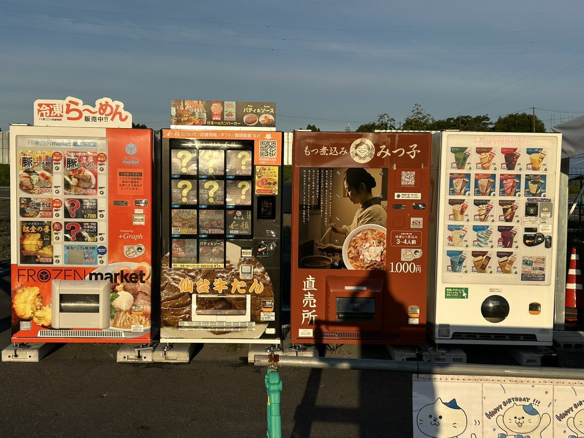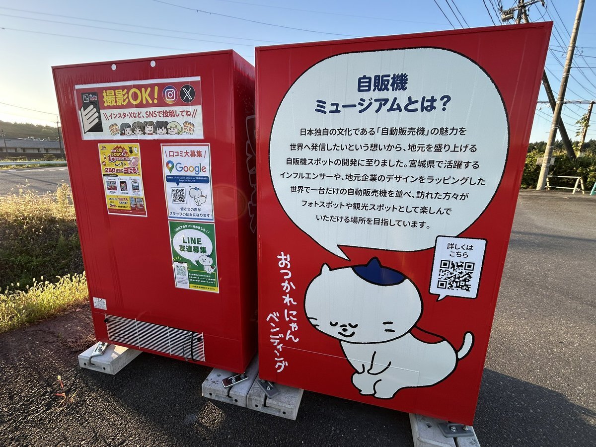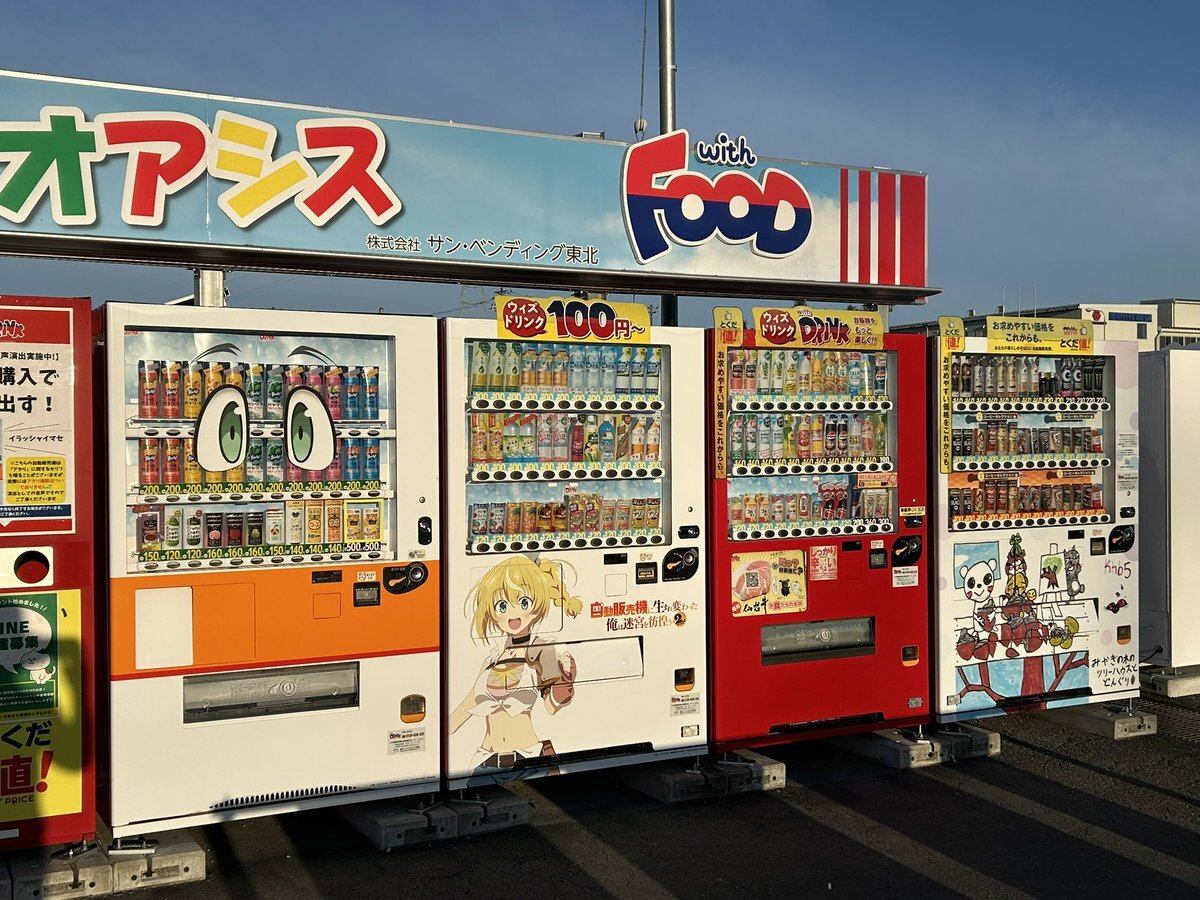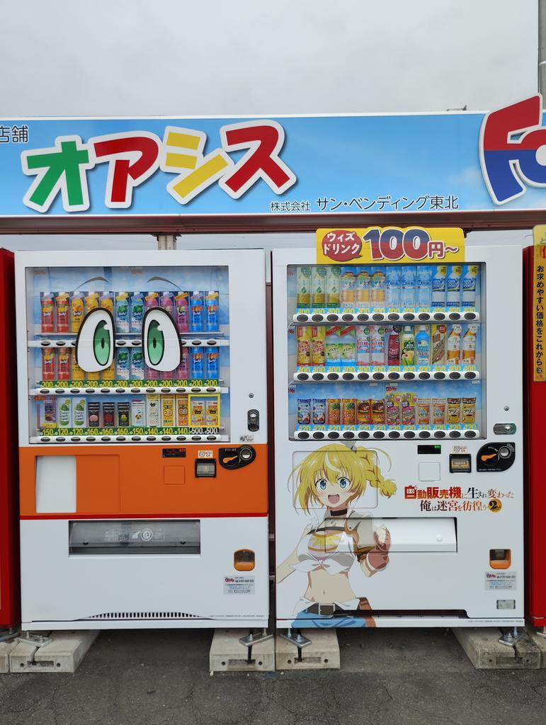 日曜の日の出とともに動き出してやってきたのは、自販機ミュージアム。 アニメ「#自動販売機に生まれ変わった俺は迷宮を彷徨う」とコラボした自販機があるというので、折角近く?まできたから足を運んでみた。 ズラリと並ぶ自販機の数々。 仙台ならではの品物の自販機もあるようだ。 pic.x.com/EeSbtyG7ot