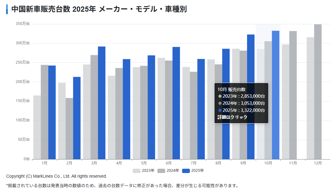 中国新車販売台数 2025年 メーカー・モデル・車種別 marklines.com/ja/statistics/… 「販売台数ランキング」の深掘りは下記リンクをご覧ください marklines.com/ja/automotive-… #自動車販売台数 #新エネルギー車販売台数 #EV #PHV #FCV #マークラインズ #自動車産業レポート pic.x.com/y5BUPtJaEj