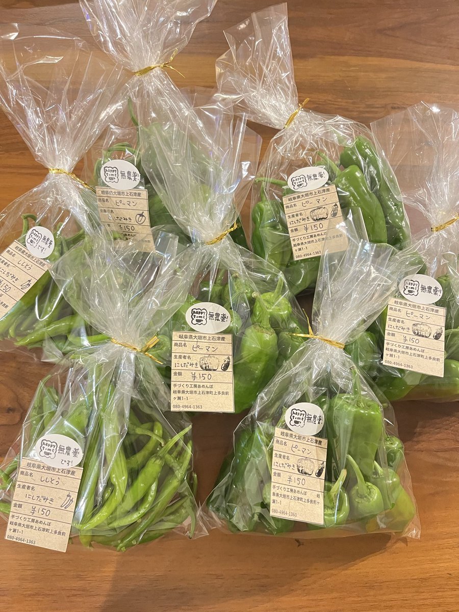 手作り雑貨happytime 野菜部です! 明日朝納品予定のピーマンとししとうです ずっしり200g程度入ってます もちろんどちらも無農薬! 手作り工房あめんぼさんで販売予定です よろしくお願いいたします! #手作り工房あめんぼ #minne #手作り雑貨happytime #岐阜県大垣市上石津町 #無農薬 #自家栽培 pic.x.com/4mR0VJVxmc