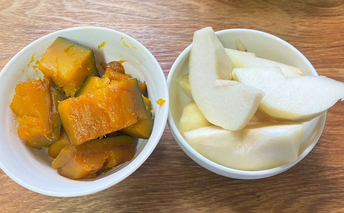 おはようございます 今日はルレクチェとカボチャの煮物です 先日、強火で放置してしまい、鍋ごと丸こげ、家中焦臭で大失態を侵してしまったのです🤣🤣 今日は弱〜火🔥でお水多めでゆ〜っくり煮てあげました✌️ ルレクチェはまだカチカチかなあ #自家栽培 #家庭菜園 pic.x.com/BmybcEjQqJ