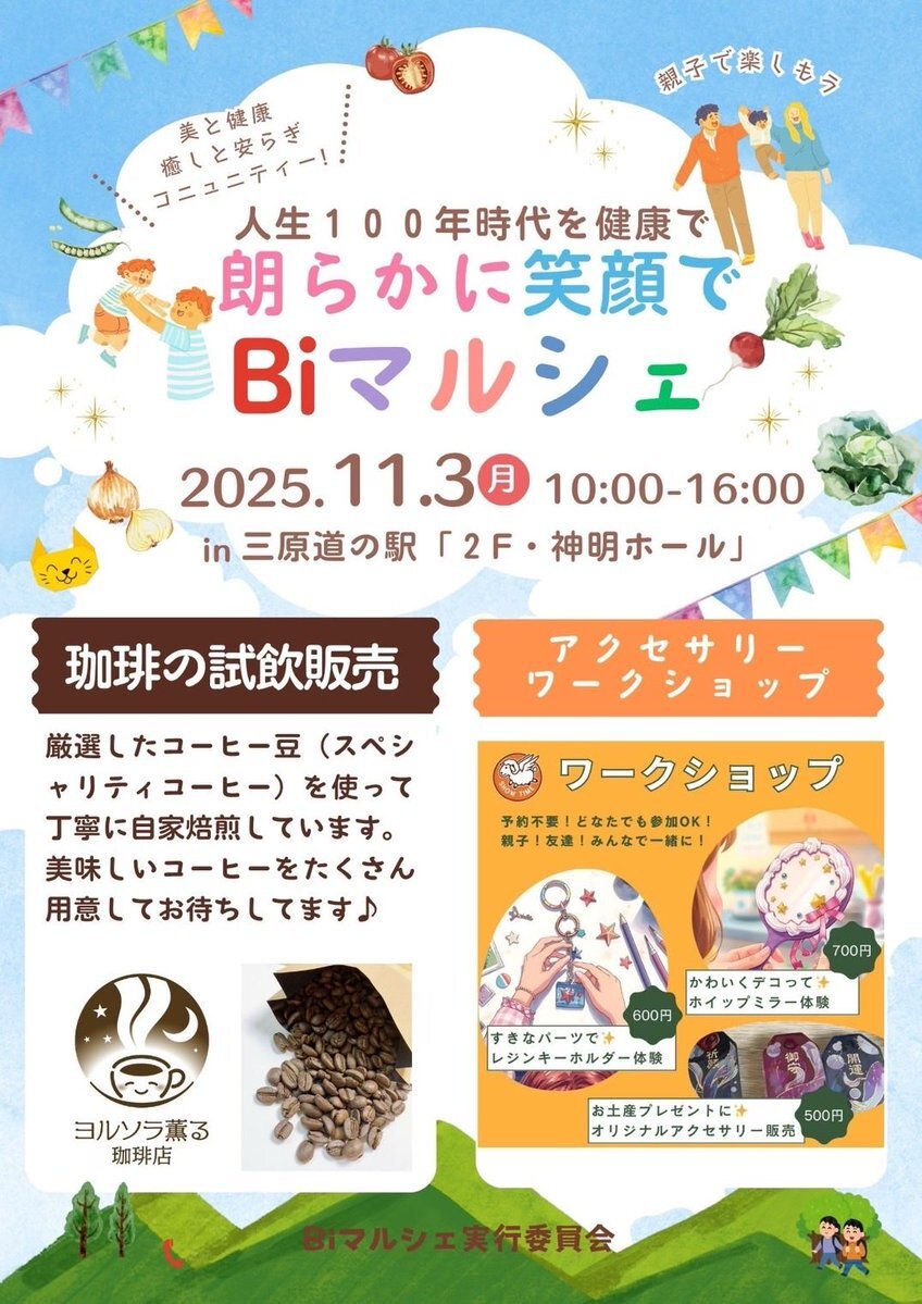 マルシェ出店のお知らせです♪ 11月3日(月)三原 道の駅 神明の里2階のホール 10:00-16:00 お待ちしております^ ^ 定番にない珈琲豆や、このマルシェのみの価格⤵️でご用意する珈琲豆など。たくさん準備してお待ちしております♪ #自家焙煎珈琲豆 #スペシャリティコーヒー #ヨルソラ薫る珈琲店 pic.x.com/WZ5D9YHKCT