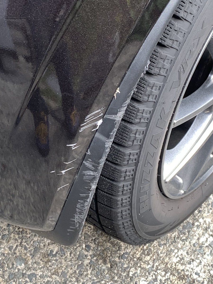 おはようございます、娘が自宅の花壇に擦ったそうです。 コレは傷隠しの塗料では無理だな😅 #自家用車 pic.x.com/35lwyT2Nvp