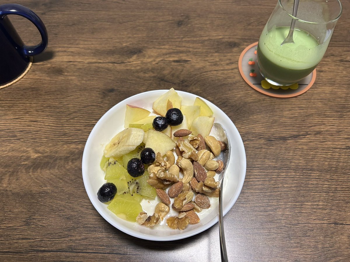 オートミール、無糖ヨーグルト、無調整豆乳、ミックスナッツ、キウイ、りんご、ブルーベリー、ひまわりの種、きな粉、ペンプシード、青汁豆乳割 #自己肯定感爆上げ #ぶち上げ #人生一度切り #トレーニーさんと繋がりたい #筋トレ #心と身体を整える #やれば誰でもできる pic.x.com/6TvHfc3NUo