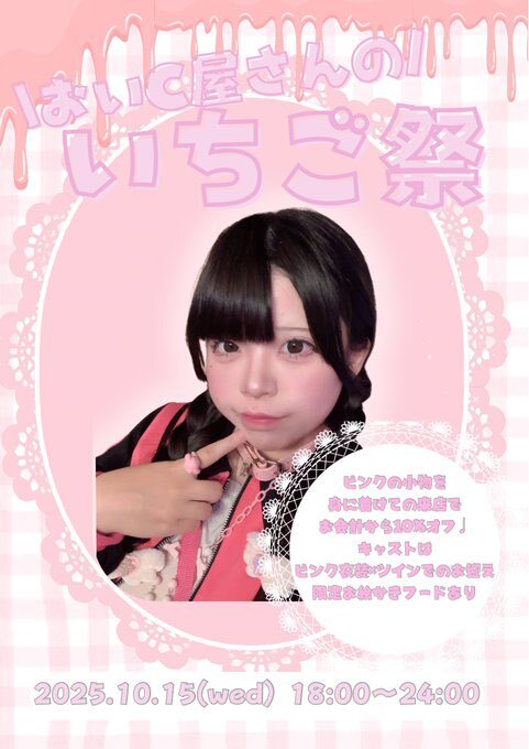 10月8日営業時間18時〜LAST 18時〜23時半 ふぶき @fu_3chipi ひな @hinya_hpns 23時〜L ゆあ @hapiness_yua ふぶき @fu_3chipi りり @r_xxri 周年月間です! お待ちしております♪