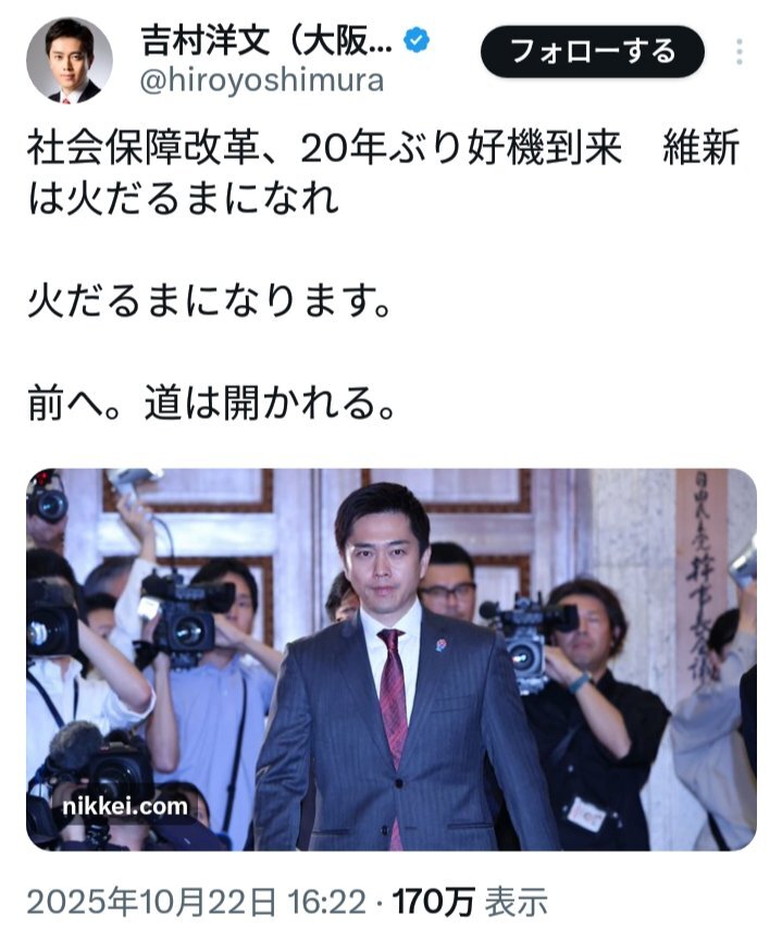 返信先:@hiroyoshimura議員定数削減より #企業献金廃止 #消費税廃止  が先でしょ。「自民党と一緒にやっていくのは不可能」と言ってたくせに、万博未払い問題でヤバくなったら尻尾振るんですか?それとも2回も拒否された副首都構想で釣られた? #自民と維新に殺される #スパイ防止法は現代の治安維持法 #万博未払い問題 pic.x.com/Yqqon69BsY