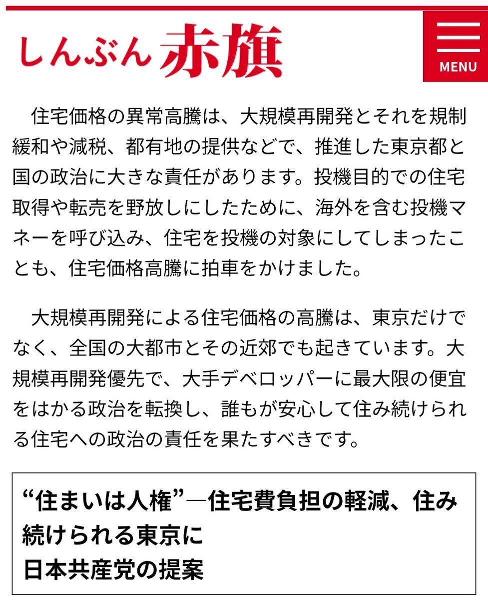 返信先:@toshiyuki_kino#いやそのりくつはおかしい 少子化を促進し、東京都心を庶民が住みにくい街にしてきたのは外国人ではない。原因と結果を混同してはいけない (@∀@) jcp.or.jp/akahata/aik25/… #犯人は日本人 #自民党から自由主義社会を守れ #オタクだからこそ政治を批判する #オタクだからこそ基本的人権を守る pic.x.com/udElCMtPXw