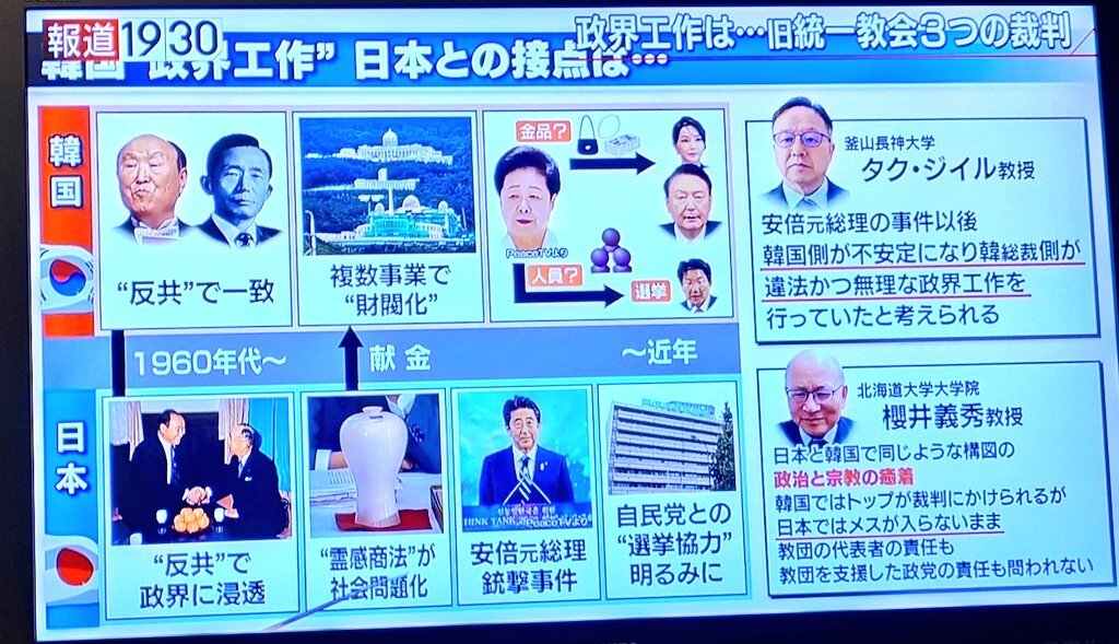 日本での政治と宗教の癒着 韓国ではトップが裁判にかけられるが 日本ではメスが入らないまま 教団の代表者の責任も、教団を支援した政党の責任も問われない。 #報道1930