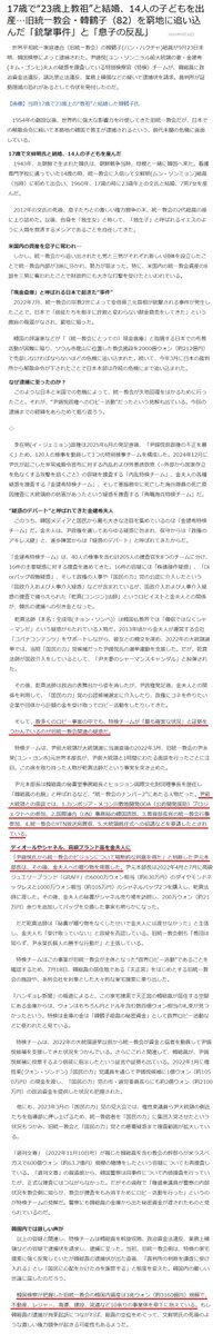17歳で“23歳上教祖”と結婚、14人の子どもを出産…旧統一教会・韓鶴子(82)を窮地に追い込んだ「銃撃事件」と「息子の反乱」 2025/09/30 bunshun.jp/articles/-/824… #自民党と統一教会の解体を求めます #統一教会 #創価学会 #幸福の科学 #カルト #政教分離違反 pic.x.com/U4uQp5Trqg