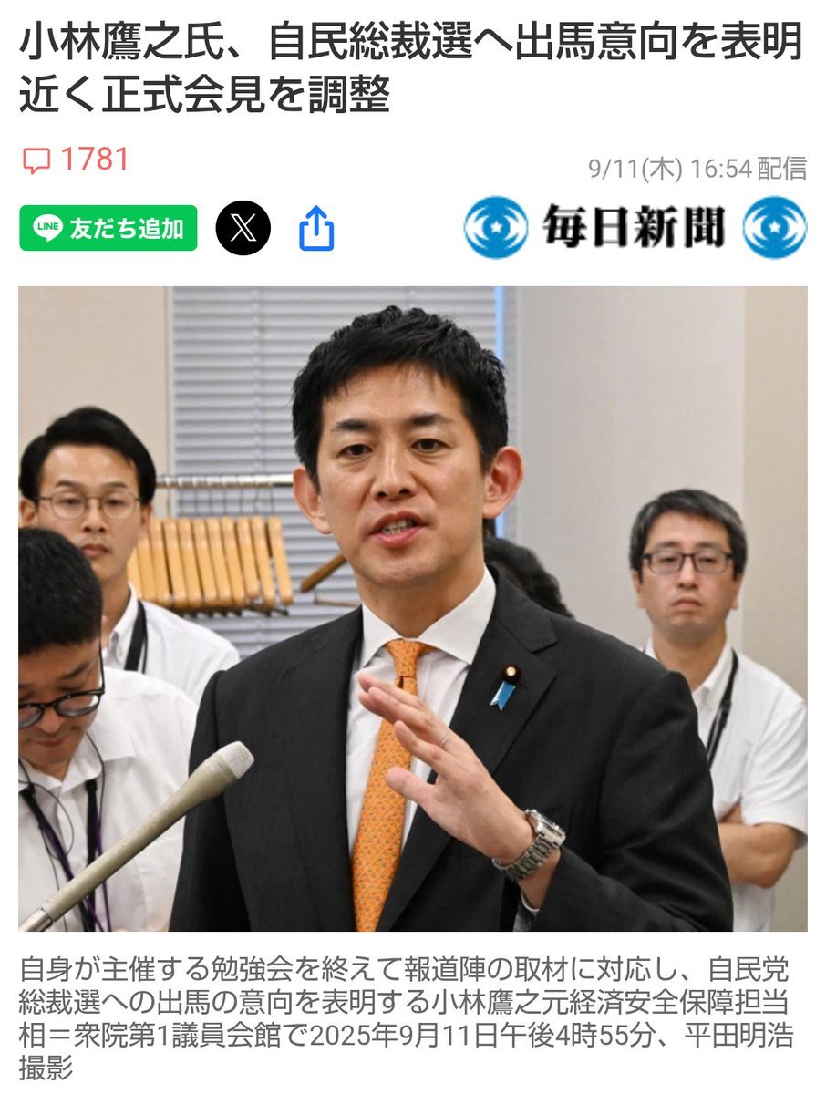 総裁選の立候補者が出揃ったが、今回は3つの選挙に大惨敗の結論が「解党的出直し」。 日本初の女性総理高市早苗を産み出さない限り、イメージを一新する事は不可能だろう。それ以外なら誰が出てきても、また党内力学で内輪で選ばれた財務省の傀儡男にしか見えない。 #自民党利権政治を終わらせる