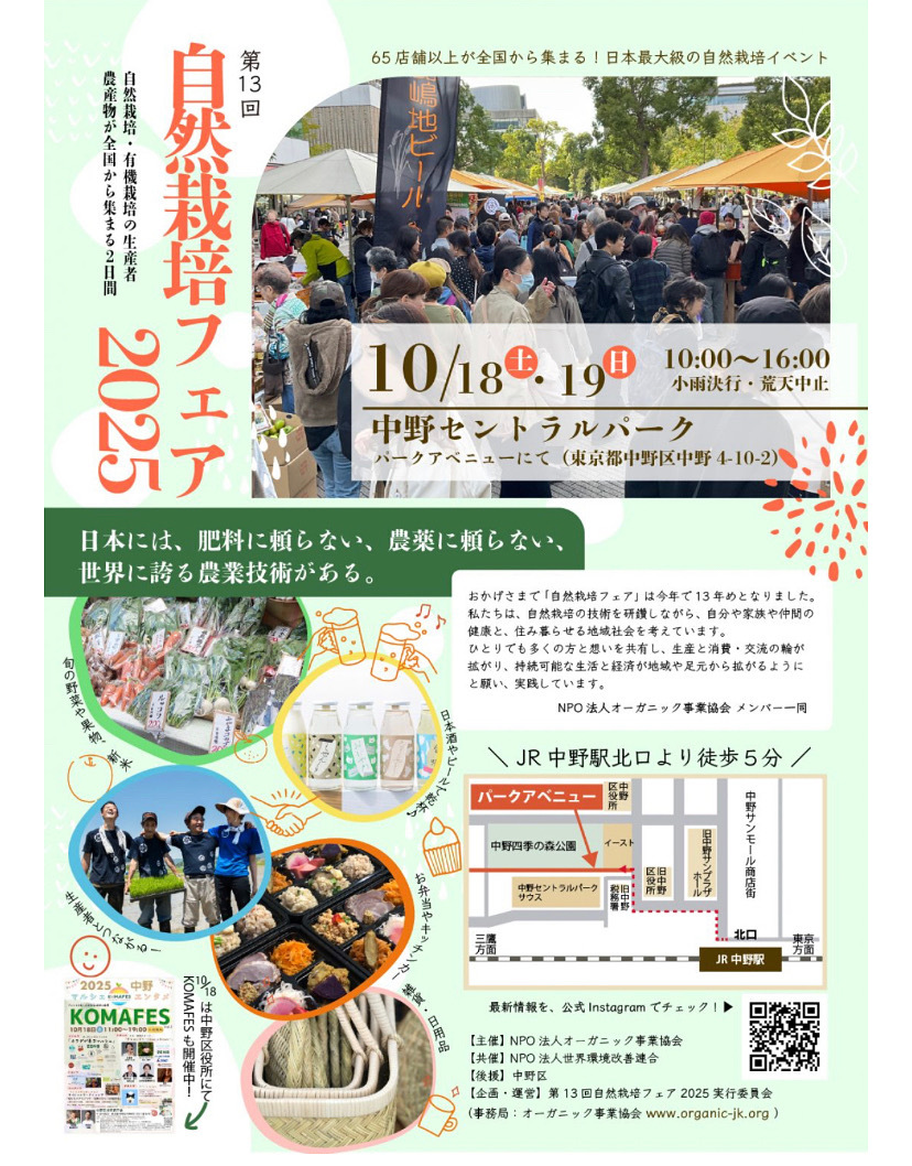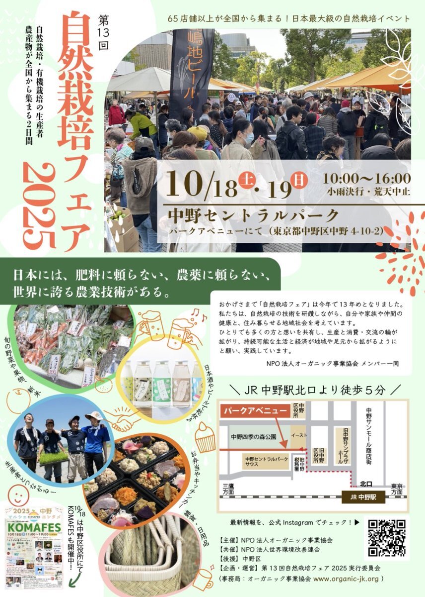 自然栽培フェア2025 昨日と違って、曇りから雨… 昨年も寒くて風が強くて、これからの時期の野外イベントは秋晴れと思いきや、出店する側にとっても意外に大変なんだよなあ。 無農薬、無肥料の自然栽培で育てたられたものがたくさん集まってます。 #自然栽培フェア #中野セントラルパーク pic.x.com/hwqAZ12R86