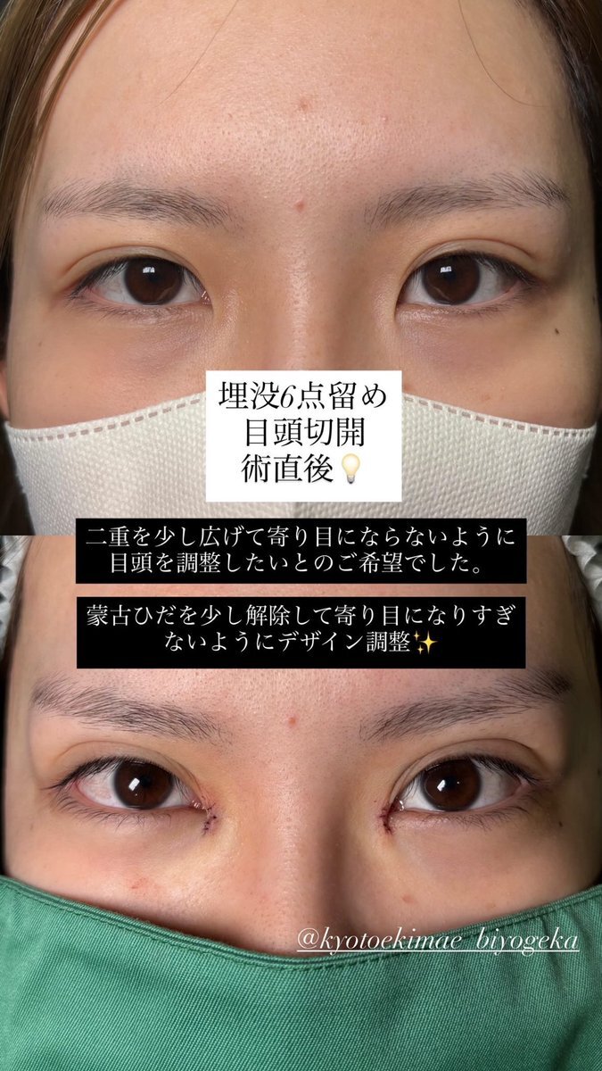二重埋没、自然癒着6点留め +目頭切開の術直後。 寄り目にならないように 蒙古ひだを少し解除する目頭切開。 蒙古ひだの微妙な左右差もあるので デザインを工夫しています💡 鼻、口元整形のみならず ハイレベルな目元切開もおまかせ✨ #自然癒着法 #目頭切開 #京都駅前美容外科 pic.x.com/GcY1bQSNtK