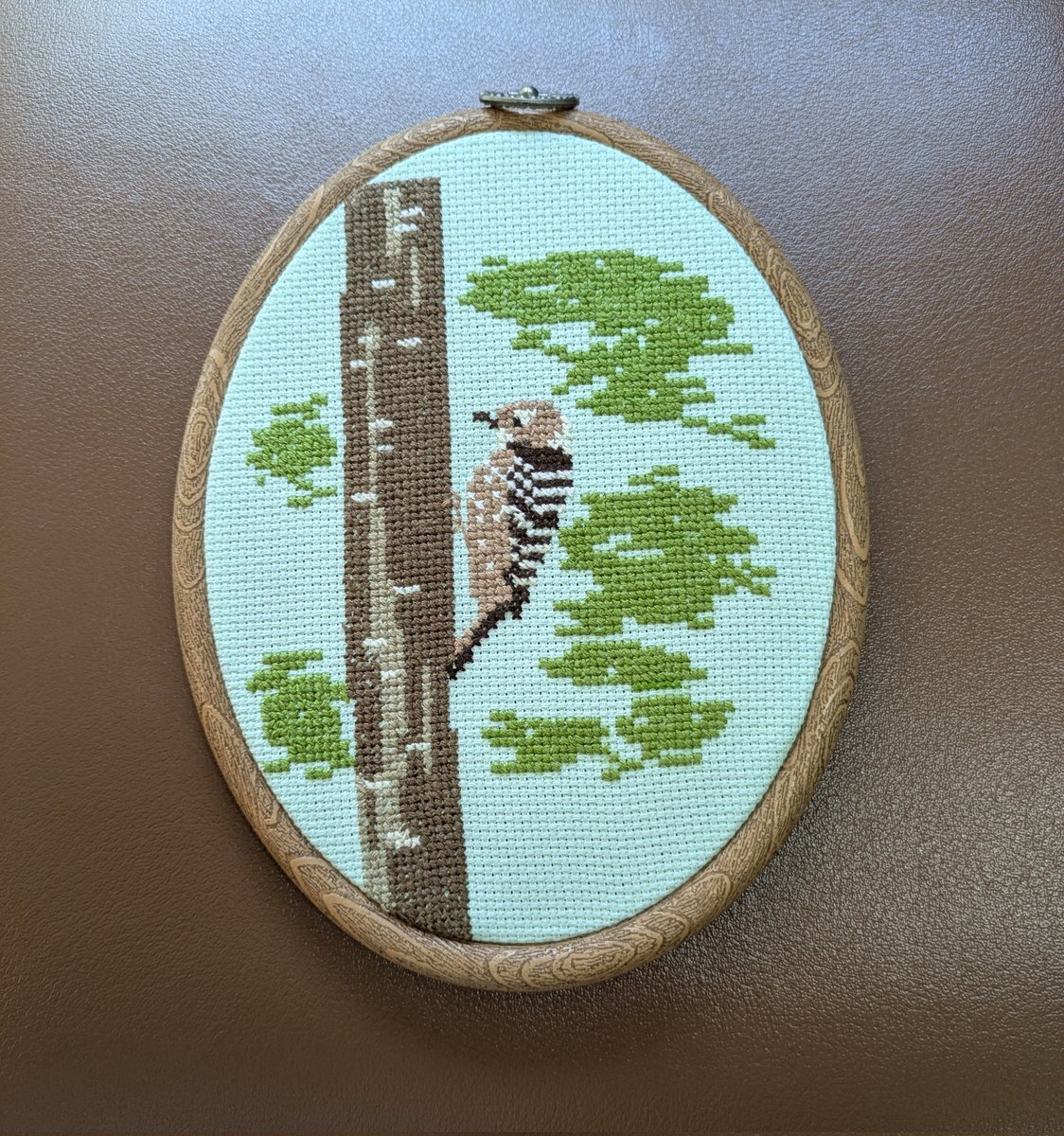 こちらも自由が丘のクラスの作品です。コゲラの刺繍のクロスステッチをウッド調のフレームに入れました。森のざわめきも刺しゅうして。 #刺繍 #クロスステッチ #crossstitch #自由が丘の刺繍教室 pic.x.com/z29Txocgvo
