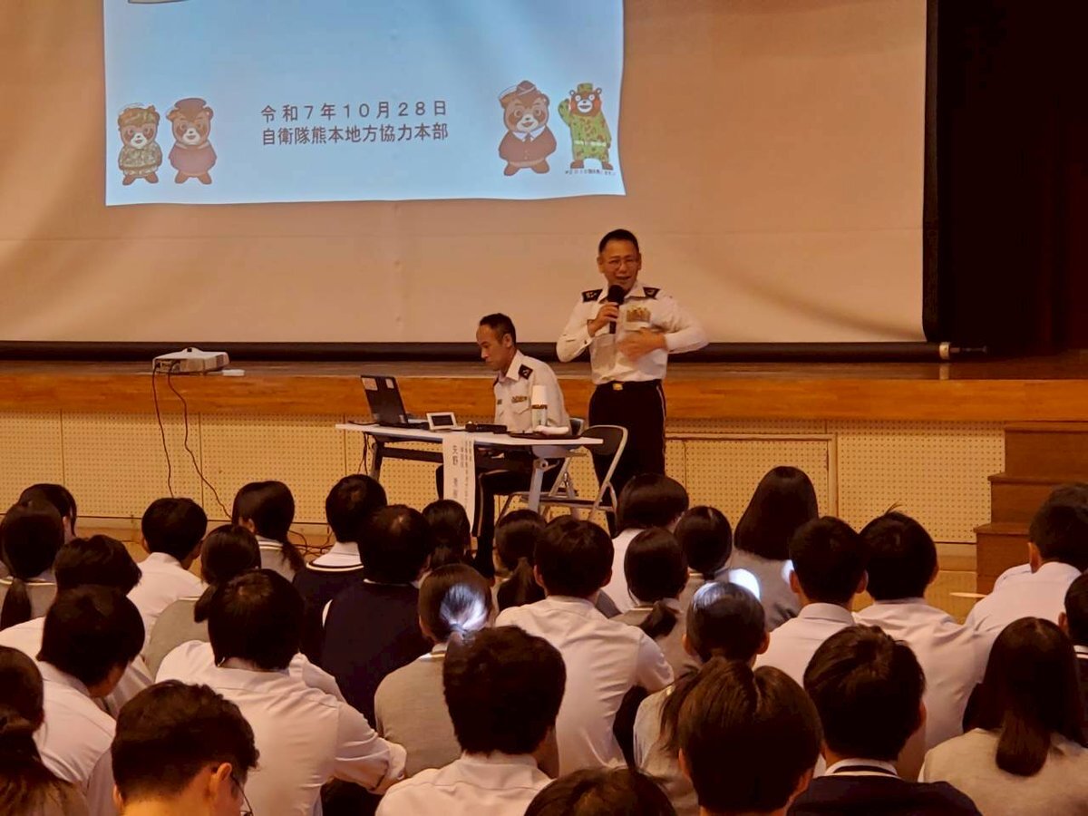 10月28日(火)#菊池農業高校 において防災講話を行いました。 「災害における自衛隊の対応」と題し、本部長が自身の #災害派遣活動 の経験を踏まえた教訓を話しました 菊池所員が #自衛隊式ライフハック の紹介も行いました 将来を担う高校生に自衛隊の活動をアピールしました👍 #菊池 #防災 #自衛官 pic.x.com/LkhT5YEyve