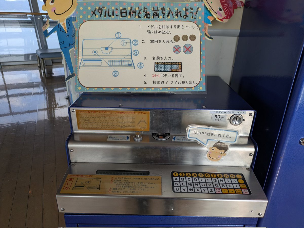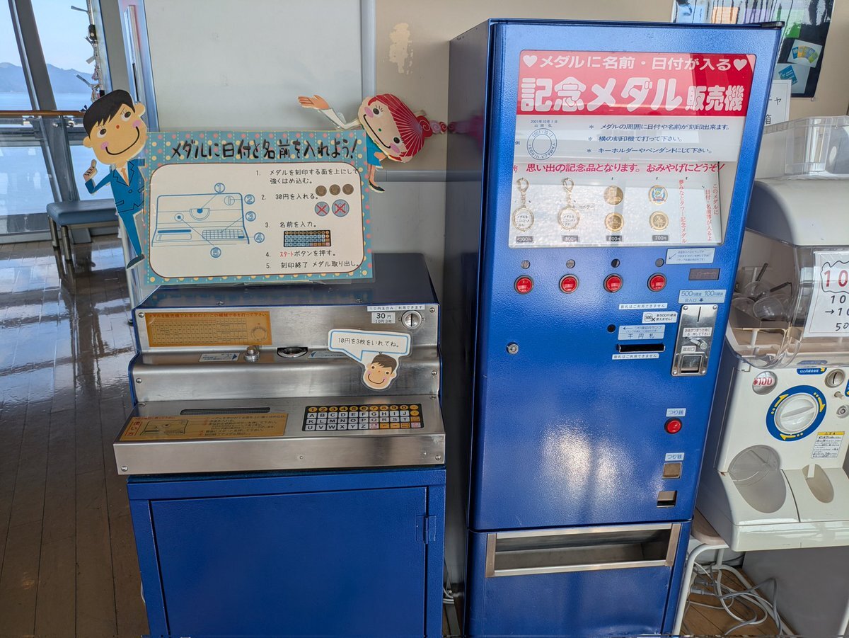 ひさしぶりに夢みなとタワーに行った記念に前から気になっていた年代ものっぽい記念メダル販売機にお金を投入🏅 すごい音で刻印し始めた Σ(・∀・;) #護衛艦まきなみ #潜水艦うんりゅう #護衛艦 #自衛隊フェスin境港 #境港 #境夢みなとターミナル #自衛隊 #夢みなとタワー #記念メダル pic.x.com/oD3ZvaIMzC