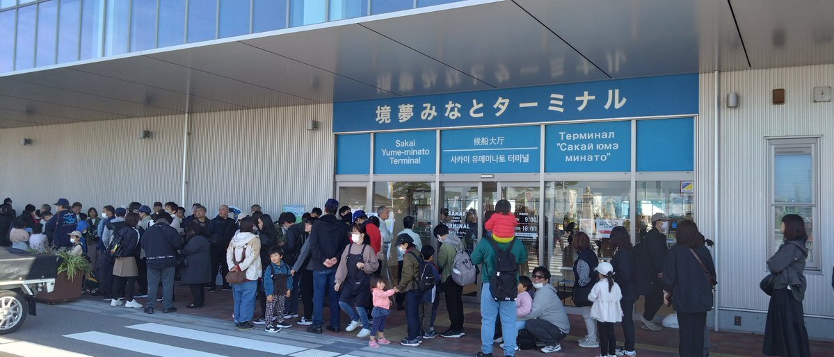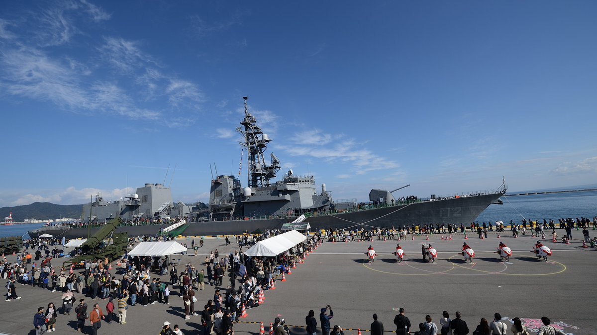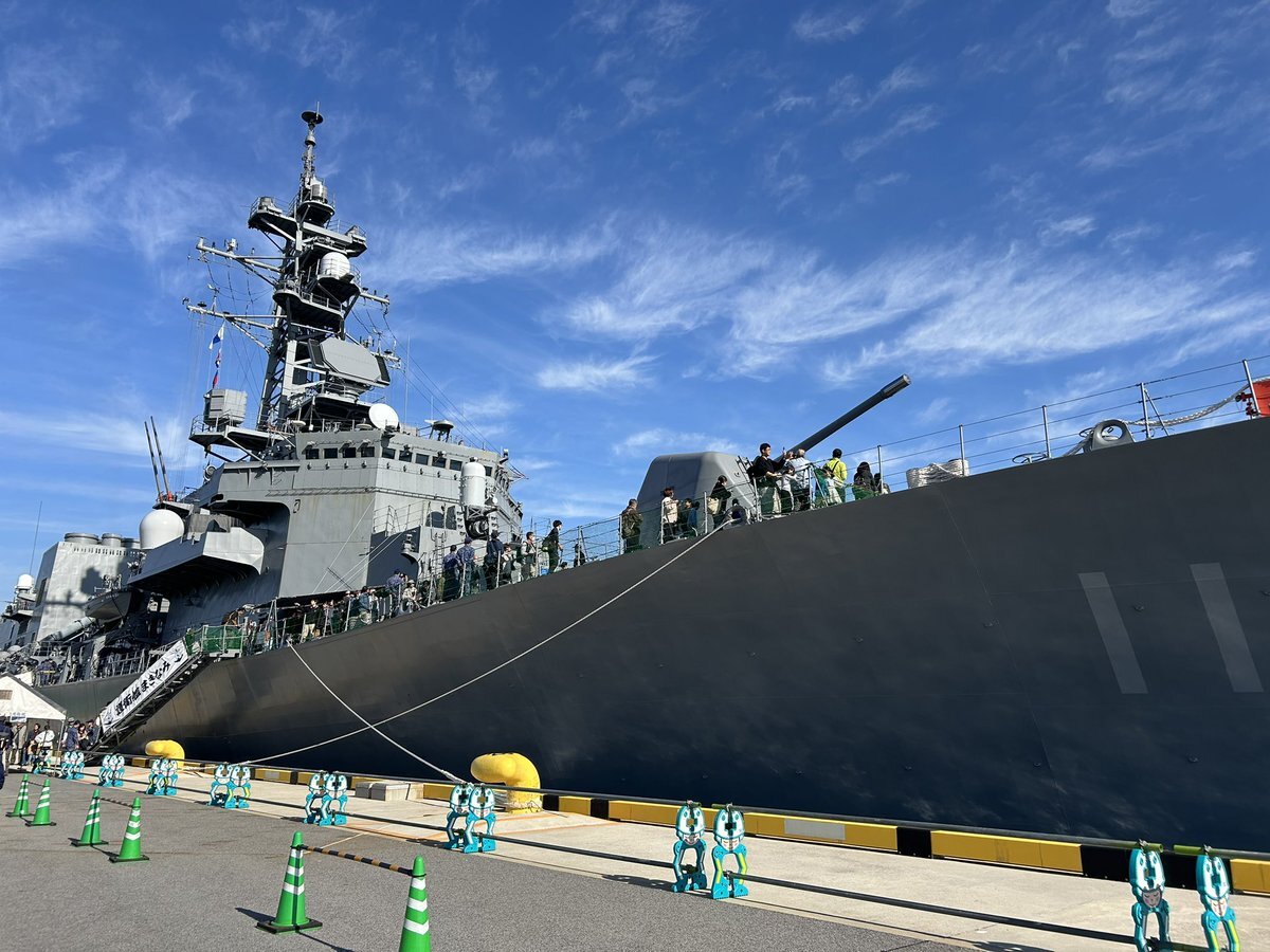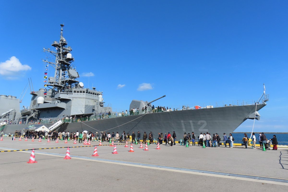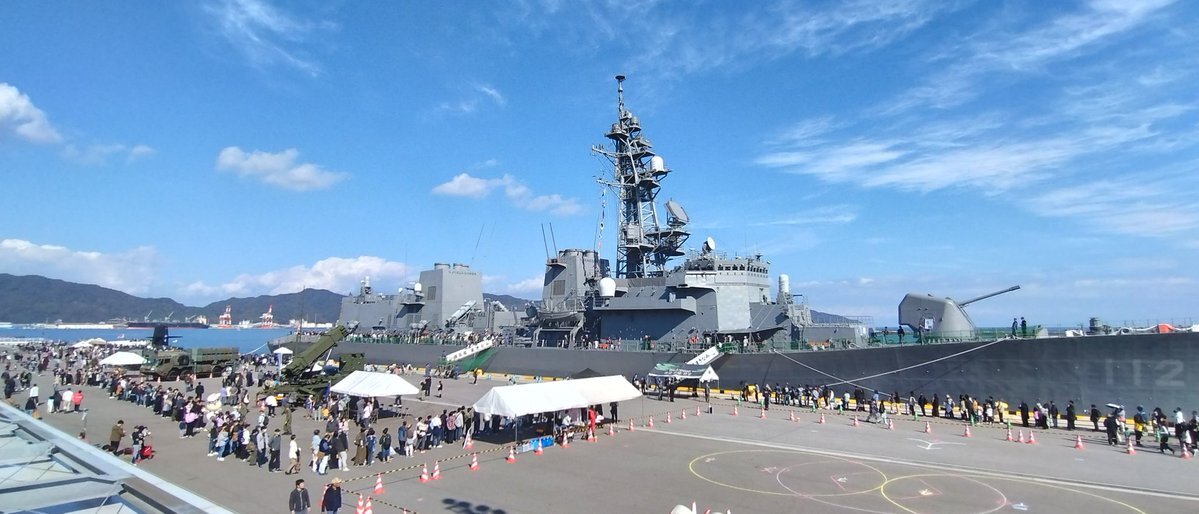 (R7(2025).11:15(Sat.) 12:20(JST)) 「#自衛隊フェスin境港」 #海自 の #護衛艦『#まきなみ』(#dd112)一般公開。長蛇の列。 #護衛艦まきなみ #jsmakinami #第7護衛隊 #大湊基地 #第3航空隊 #海上自衛隊 #jmsdf #境夢みなとターミナル #鳥取県境港市 pic.x.com/7U44WeI7wn