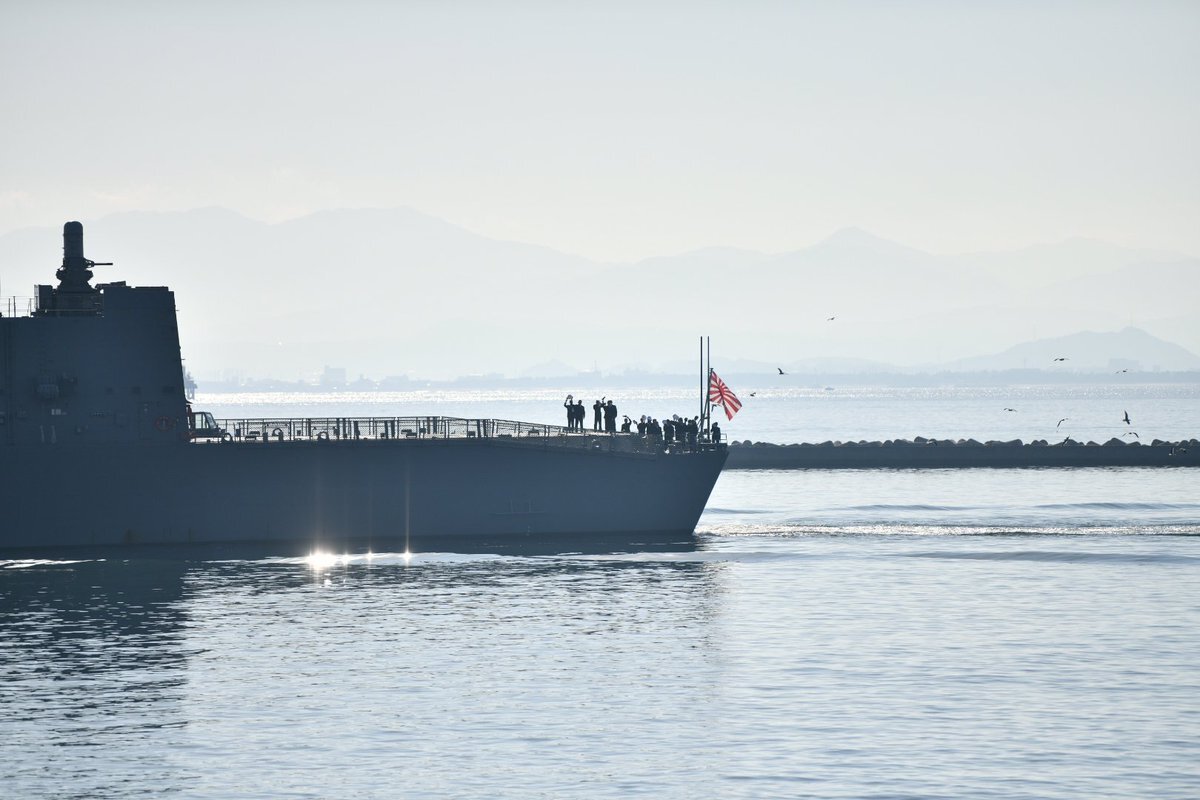 境港を出港する護衛艦まきなみ🚢 左に帽振れ!の号令とともに帽振れでお別れ (・∀・)ノシ 一般公開ありがとうございました ご安航を🌊 #護衛艦まきなみ #潜水艦うんりゅう #護衛艦 #潜水艦 #自衛隊フェスin境港 #境港 #境夢みなとターミナル #自衛隊 #海上自衛隊 pic.x.com/FFbhdAFOx9