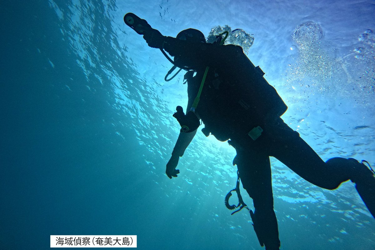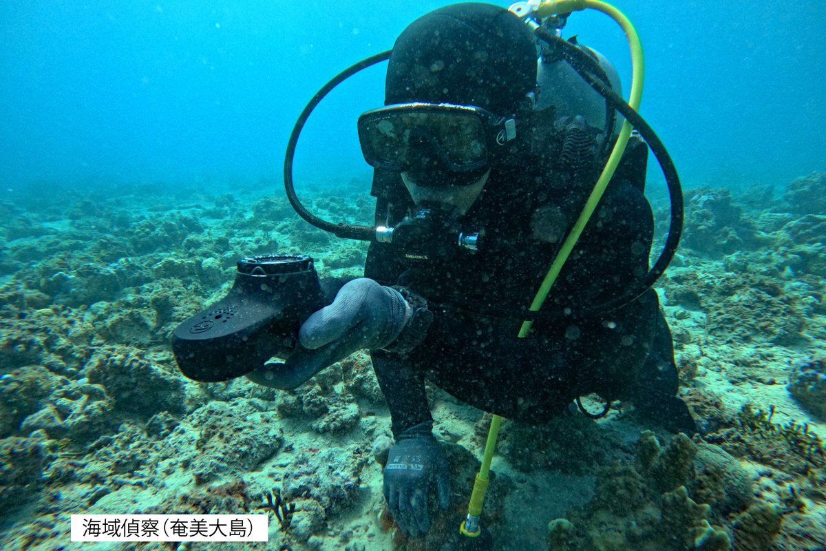 【#自衛隊統合演習 ( #07JX 活動紹介① )】 西部方面隊は、11月20日から自衛隊統合演習に参加しました! 今回は、訓練間に参加した隊員の様子について紹介します。 写真は、奄美大島における第303水際地雷敷設中隊による海域偵察及び水際地雷原構成準備の訓練の様子です。 #西部方面隊 pic.x.com/VqXJJMmjGw