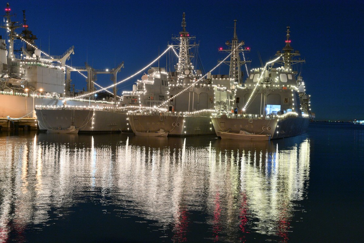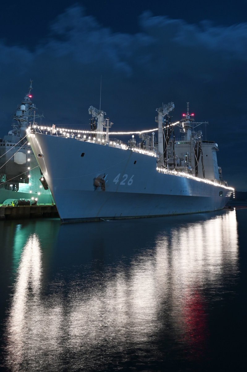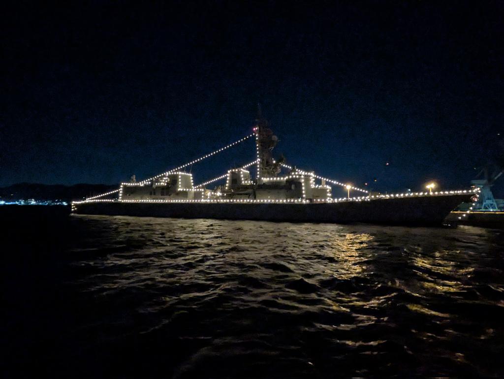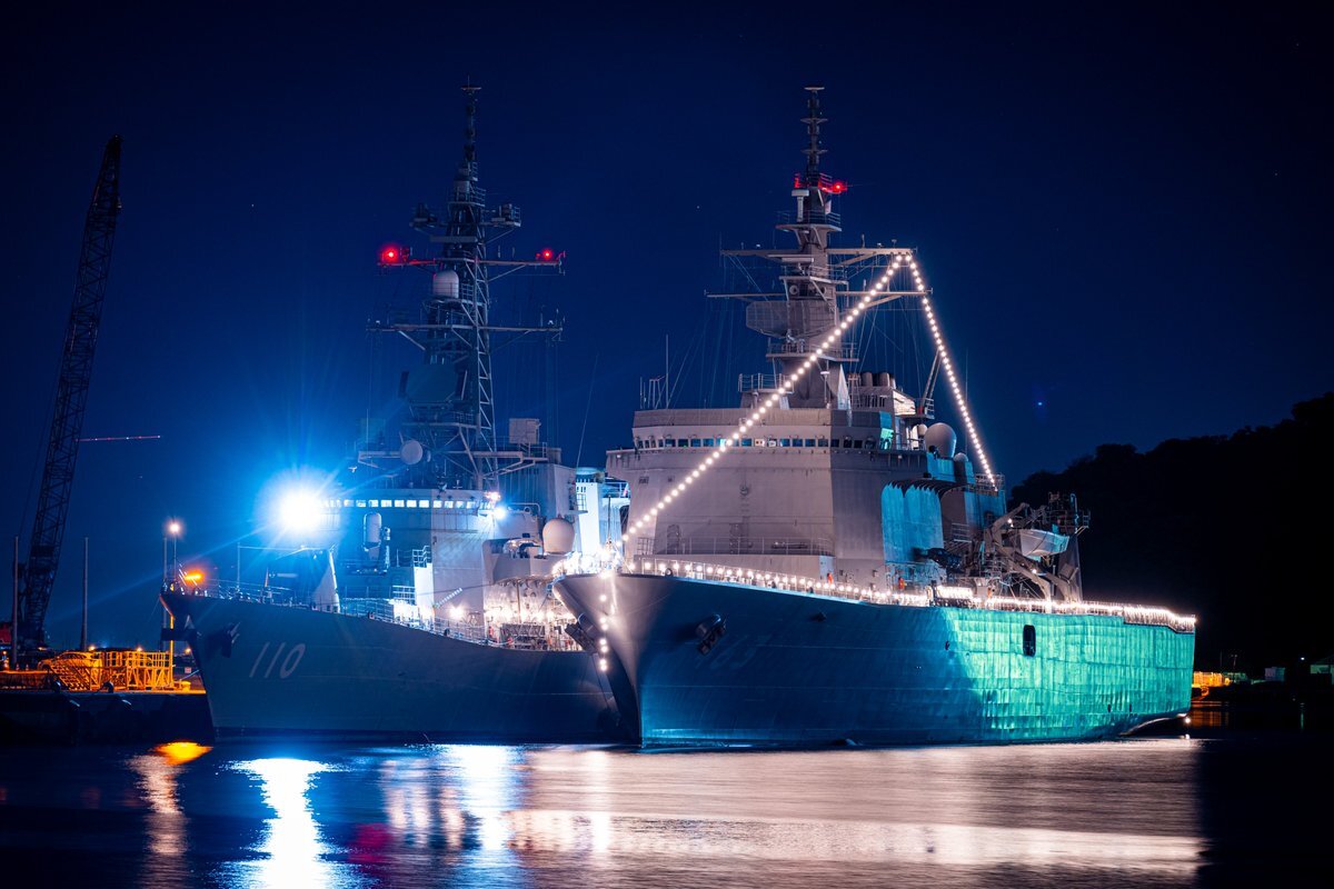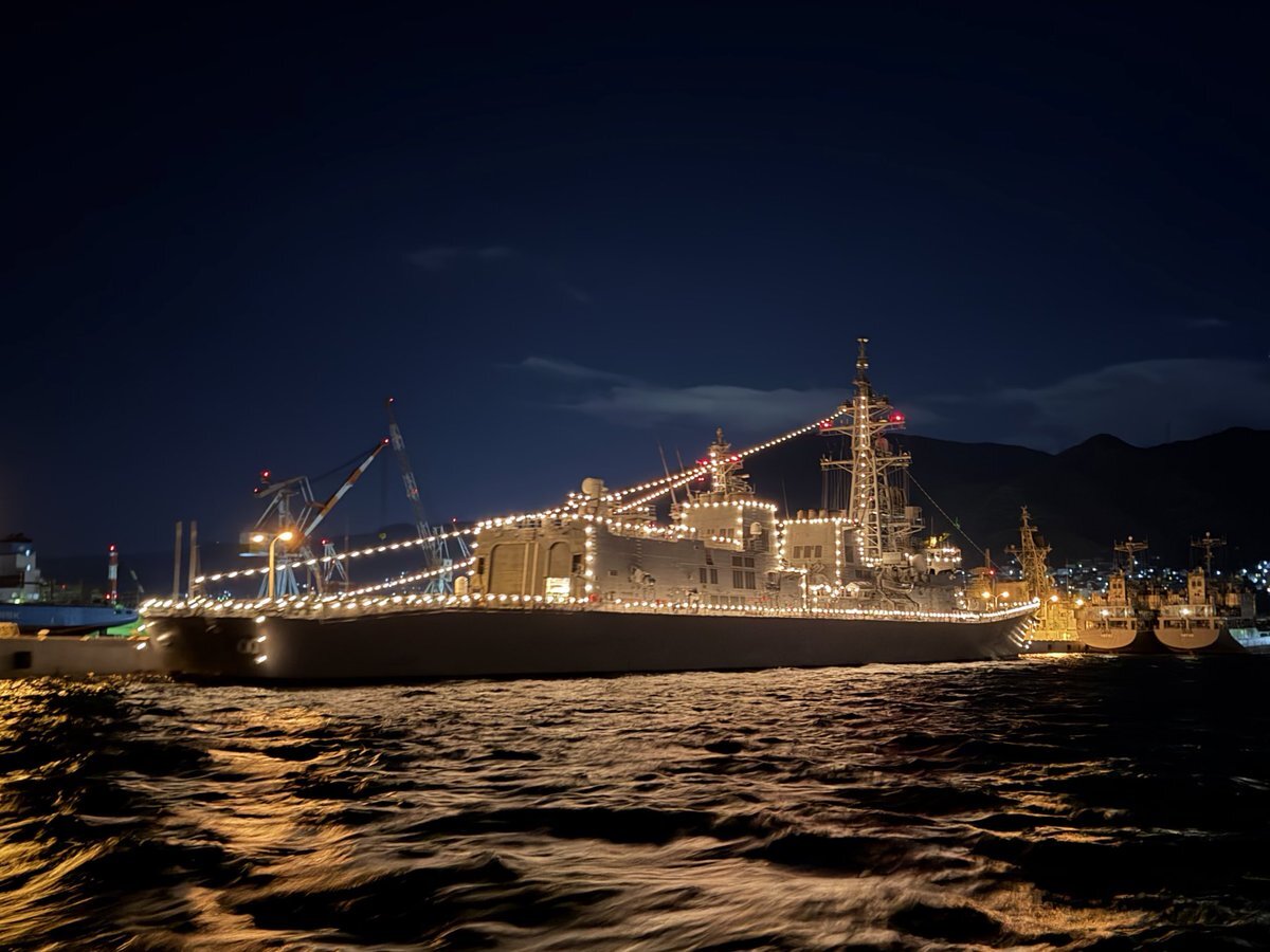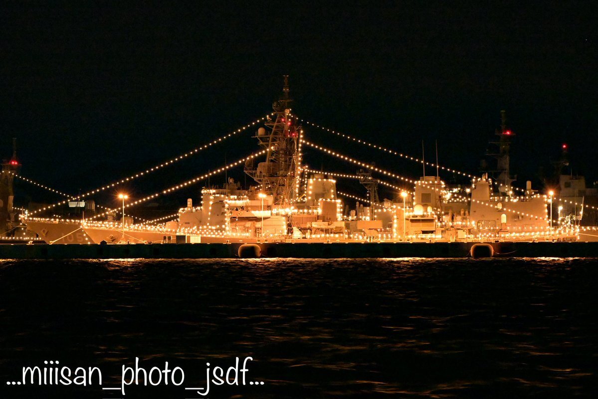 2025/11/1 自衛隊記念日 電燈艦飾の様子でした。 日夜、海上交通の平和と安全の為に勤められている海上自衛隊の皆さんには、本当に頭が下がります。 一般公開時には「頑張って下さい!」の声を掛けさせて頂いていますが、日々の奮闘に感謝の極みです(*‘ω‘ *) #海上自衛隊 #自衛隊記念日 #電燈艦飾 pic.x.com/Apwpfwwjai