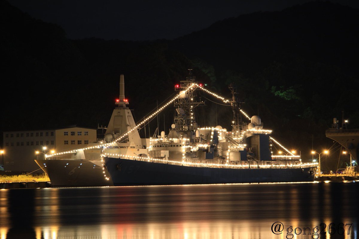 昨日は #自衛隊記念日 の #呉艦船巡りナイトクルーズ に参加しました。 風が強くやや肌寒い感じもしましたがとても綺麗で感動的な瞬間に立ち会いました✨ しかしながら電灯艦飾点灯の瞬間を録画し損ねるという痛恨のミス(目視はしました)。 逆に考えるんだ。 来年も参加すればいいさって💡