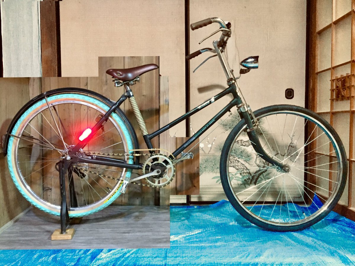 前後異径 #実用車 SEKI-鵺 BE&650B #自転車カスタム BEAM『スプリングコンフォート』 昭和インダストリーズ 『WCG-01T』 KiLEY 砲弾ライト『LM-001』 和泉チエン『JET BLACK』 Knog『BLINDER V BOLT』 唐沢製作所『サーボブレーキ』 カイエンドー『レザーハブ毛』 後輪⏬x.com/ymmtSpirale/st… pic.x.com/clF10thj5j