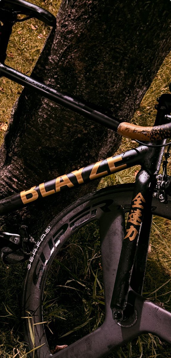 黒と金のコントラストが映える🔥 「BLAZE」と「全速力」ロゴで走る姿がさらに輝く✨ #自転車カスタム #カッティングステッカー #BLAZE pic.x.com/dq6EhHGVMe