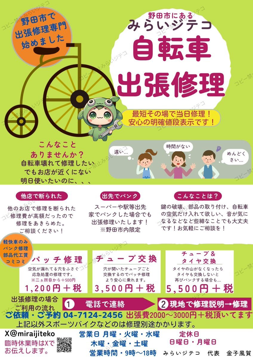 みらいジテコ【公式】(自転車出張修理店)@miraijiteko