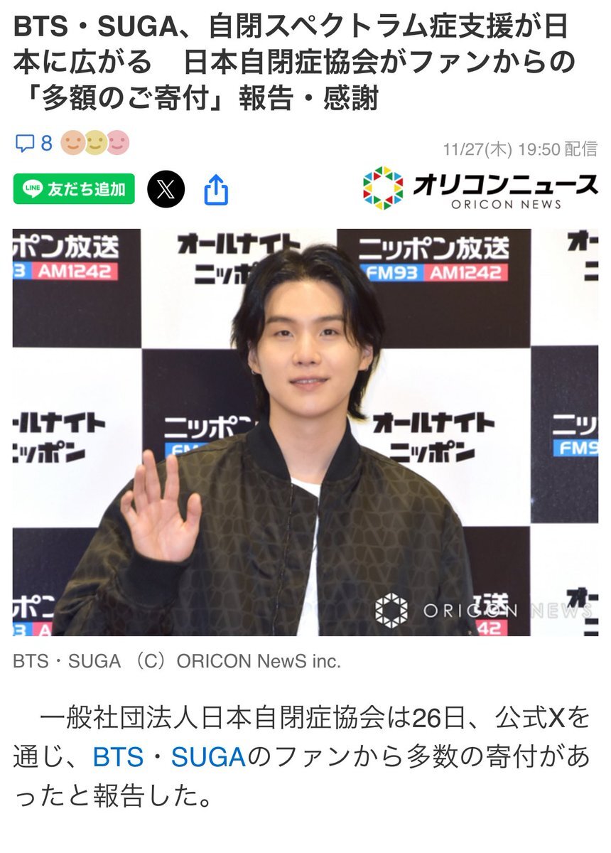 おはようございます 朝から素敵なニュースに 感動🥹 SUGA素晴らしい❗️ そしてイルアミも 最高ですね 幸せな朝 #BTS #ARMY #SUGA #自閉症スペクトラム pic.x.com/YoyuADOIeo