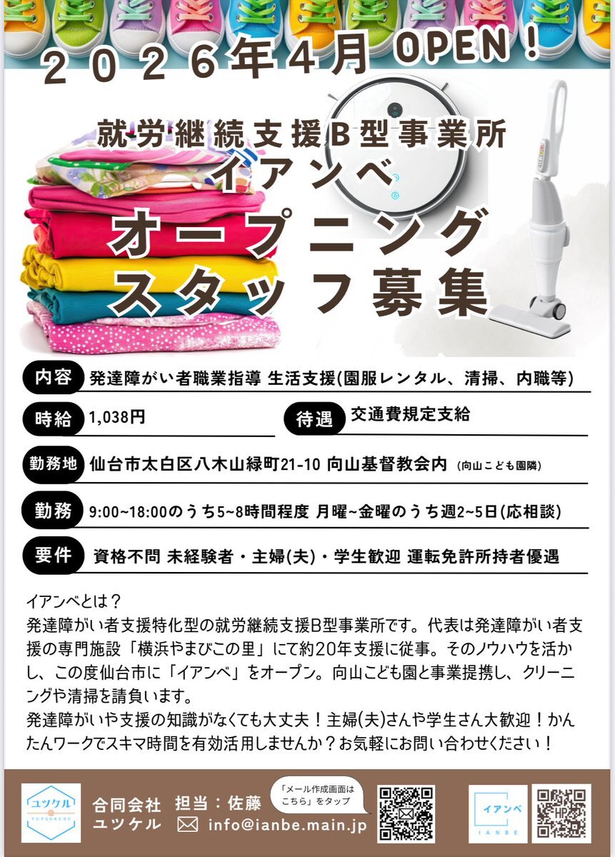 就労継続支援B型『イアンベ』 2026年春、仙台八木山緑町にOPEN! 発達障がい者特化型事業所です!! クルー、スタッフ、募集中!!! 公式HP ianbe.main.jp 公式LINE lin.ee/wNVxfPI 代表note note.com/ianbe_npo #仙台 #就B #発達障害 #ASD #自閉症スペクトラム #知的障害 pic.x.com/ImcpTCckhn