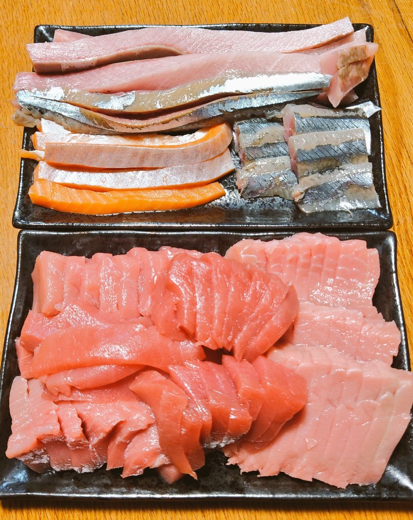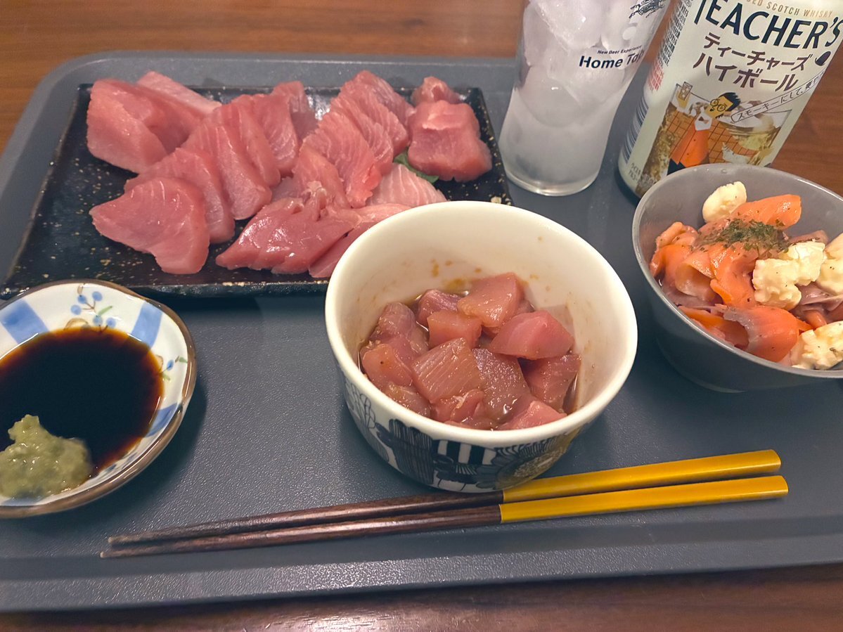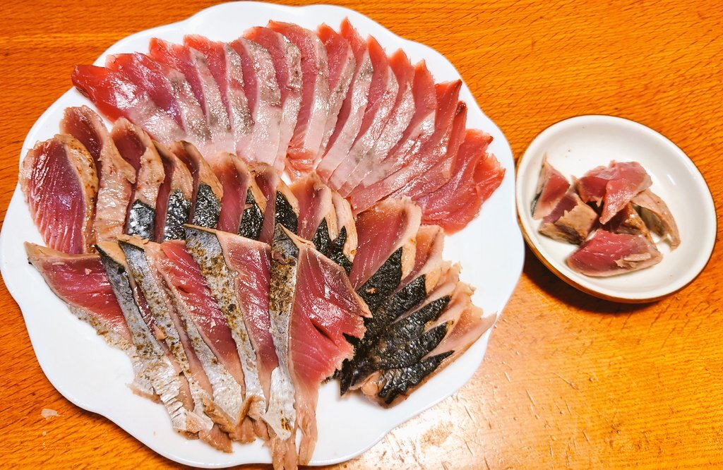 ※19時 晩ご飯🤪✨ #トロカツオ の #お寿司 と #たたき と #刺身 を作りました💪🏼😁💪🏼✨ 脂がノッていて…美味い‼️😝😜シュンヲクラオウ‼️💕🤣ソレユーチューバーサンノw 私もこれから晩酌タイムします🫣💕 家族😈💢👵🏼💢が帰ってくる前に😇← x.com/kojirou_k_/sta…