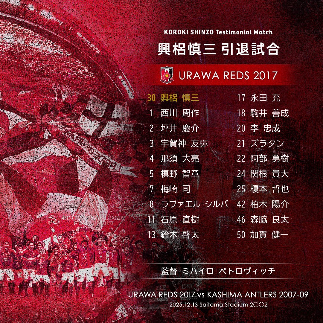 ♦️興梠慎三引退試合 追加情報発表♦️ 12/13(土)に行われる興梠慎三引退試合について、現時点での出場選手含む、詳細が決定いたしましたのでお知らせいたします。 また当日の着用ユニフォームやチケット情報など、引退試合の情報が確認できる特設サイトも公開いたしました。ぜひご覧ください。