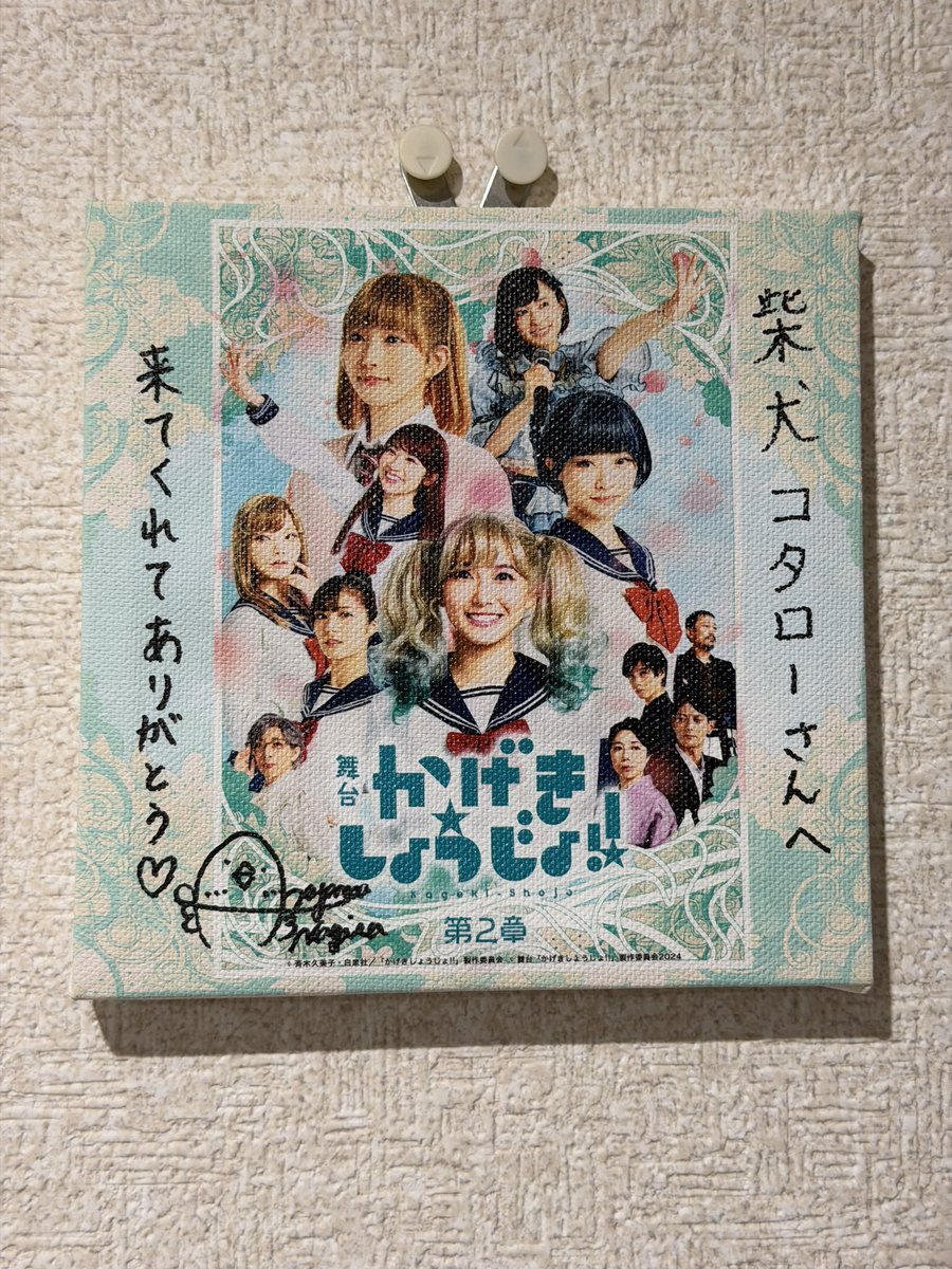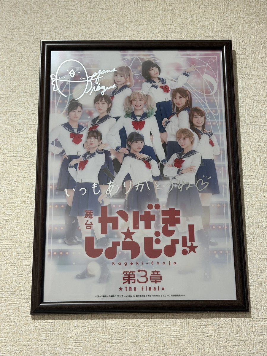 特賞のA3クリアポスター届きました✨ 第二章のキャンバスボードと一緒に 飾らせていただきます🖼️ メッセージ付きなのも嬉しいポイント☺️ ありがとうございました #舞台かげき #青山なぎさ pic.x.com/bd1xSYu8WG