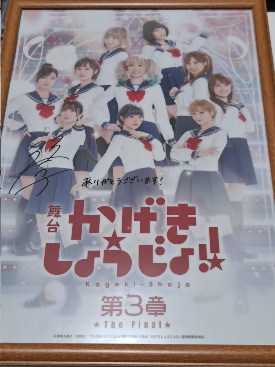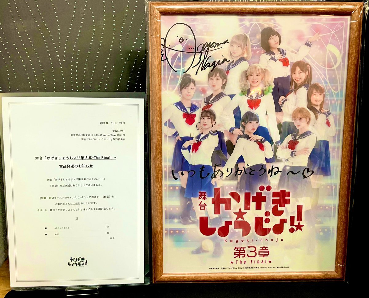 舞台「かげきしょうじょ!!」第3章 The Final 公演オリジナルくじ特賞の青山なぎささんのサイン入りA3クリアポスター(額装)が当選しました! 第1章から観劇してきた舞台作品なのでとても光栄です🙏 この作品との思い出と共にいつまでも大切にしていきます🌹 #舞台かげき #かげきファイナル pic.x.com/beF7kBNvDm