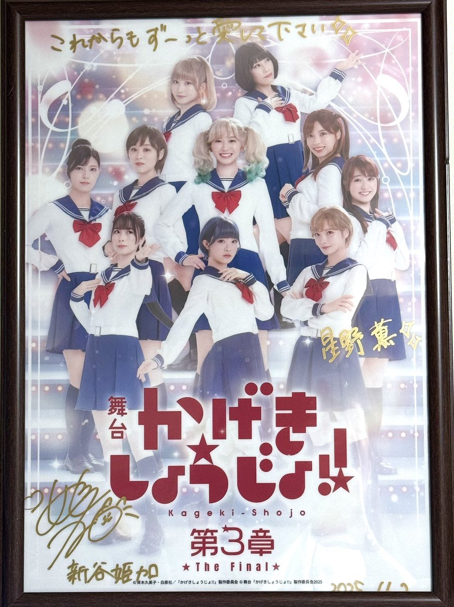 #舞台かげきしょうじょ 現地で当たった特賞 #新谷姫加 さんのサイン入りポスター額縁入り届いた(๑˃̵ᴗ˂̵) ご本人のサインはもちろん、星野薫ちゃんの名前にメッセージまで! 嬉しすぎる! 1章で初めて観て演技に惚れました 今後も応援してます #舞台かげき #かげきファイナル #かげきしょうじよ pic.x.com/lLJgNkK7Xz