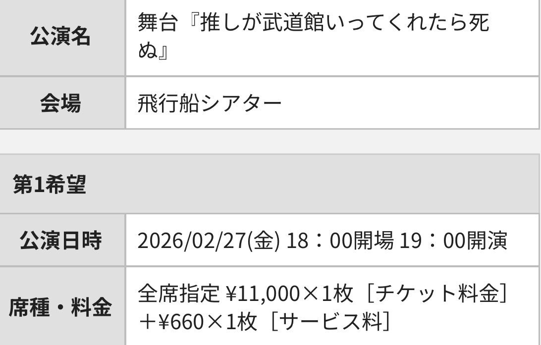 とりま名古屋と東京1公演ずつ申し込んだ。推し武道、ドラマと映画見て面白かったから楽しみ😇舞台で表現するの難しそうだけど、この作品とSKEに相乗効果が生まれたら嬉しい(←たぶんあずあずはこれを伝えたかった) #推しが武道館いってくれたら死ぬ #舞台推し武道 #SKE48 #大村杏 #西井美桜 pic.x.com/nPkPI3vakI