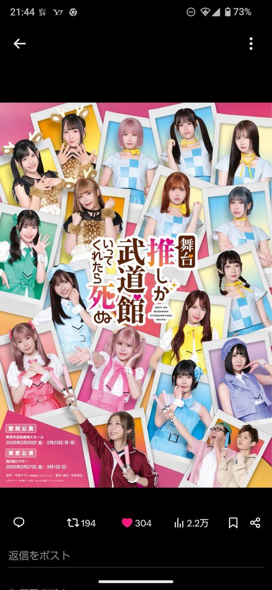 舞台『 #推しが武道館いってくれたら死ぬ 』 チケット最速先行開始いたしました🎫 ┊愛知┊📅2/20~2/23 📍 #東海市芸術劇場  ┊東京┊📅2/27~3/1 📍 #飛行船シアター HP👇 hikosen.co.jp/oshibudo-stage/ チケットお申込み👇 eplus.jp/sf/detail/4398… #舞台推し武道