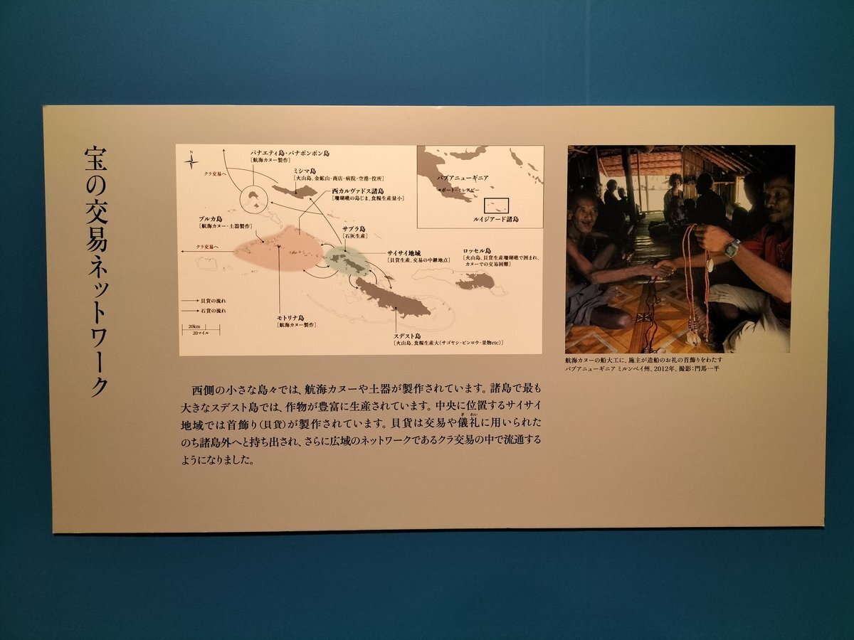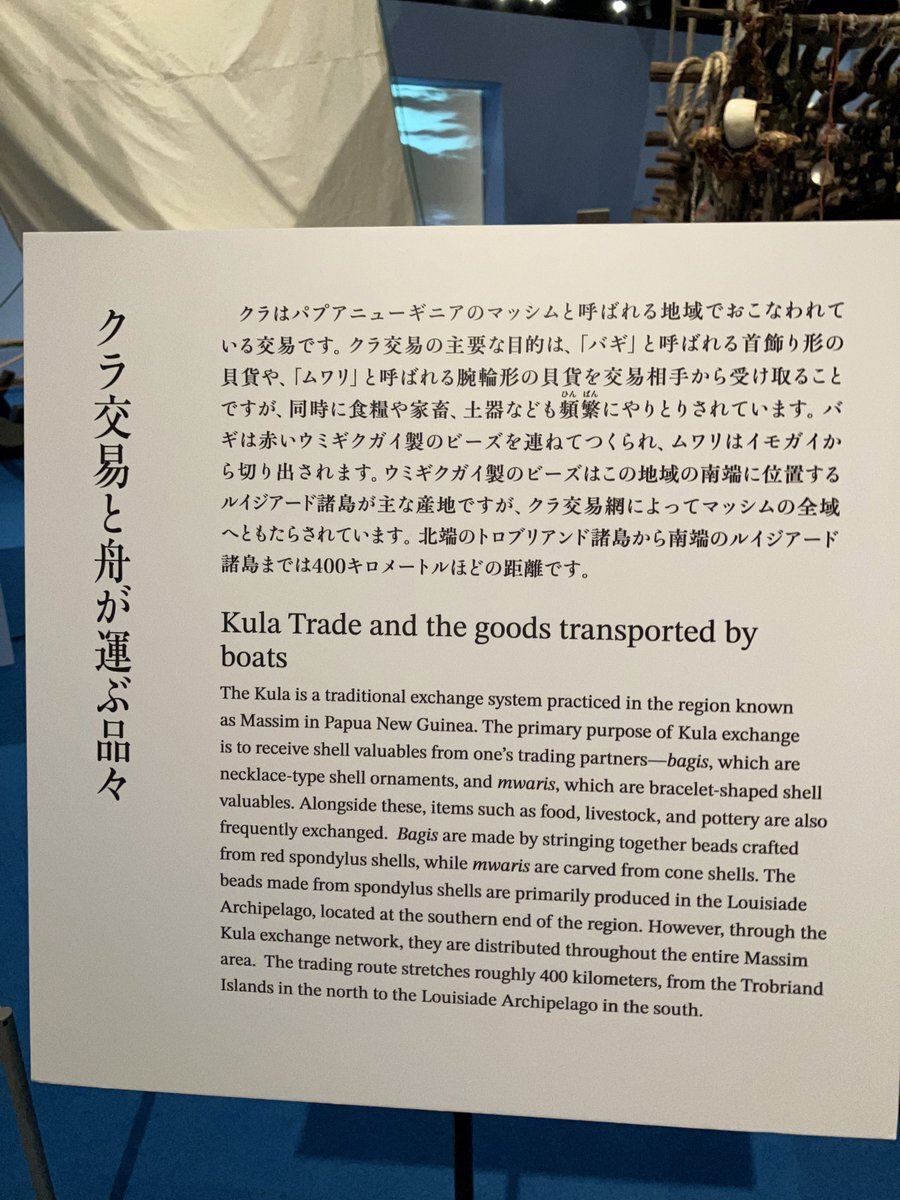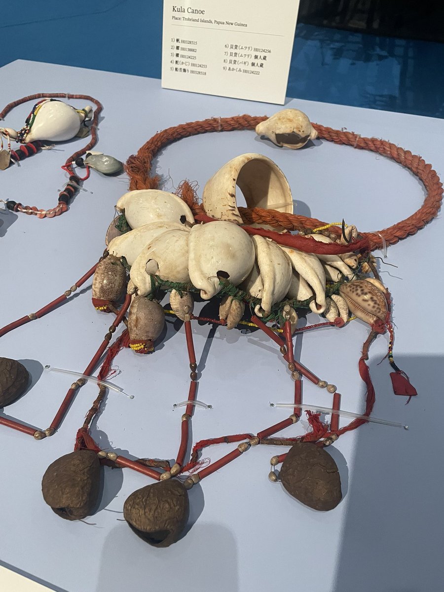メラネシアのトロブリアンド諸島で社会関係の構築のため貝製の首飾り(ソウラヴァ)と腕輪(ヴァイグア)の2種類の装飾品を島伝いに贈与品として交換する「クラ交易」のお話が興味深かった。欲しかったTシャツとクラ交易に使われるクラカヌーのバッチを買ってご機嫌です⤴️ #みんぱく #舟と人類 pic.x.com/DE2QXsH7Ld